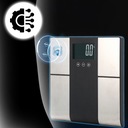 Waga analityczna mierzy masę ciała (5-225 kg), BMI, procent tkanki tłuszczowej, wody i masy mięśniowej, umożliwia ustawienie profili dla 10 użytkowników.