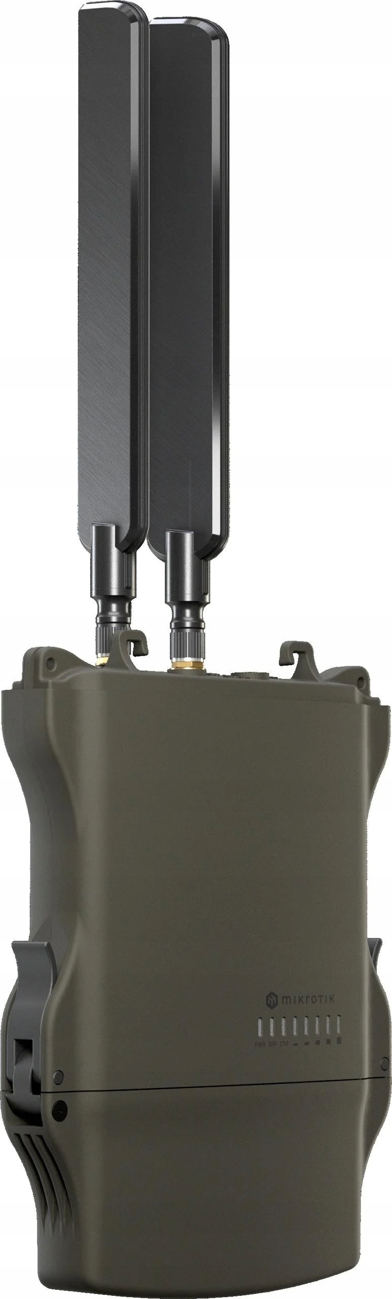Product codeL23UGSR-5HaxD2HaxD-NMArchitectureARMCPUIPQ-5010CPU core count2CPU nominal frequency800 MHzRouterOS license4Operating SystemRouterOS v7Size of RAM256 MBStorage size128 MBStorage typeNANDMTBFApproximately 200'000 hours at 25CTested ambient temperature-40°C to 70°CPoweringNumber of DC inputs2 (DC jack, PoE-IN)DC jack input Voltage12-28 VMax power consumption25 WMax power consumption without attachments12 WCooling typePassivePoE inPassive PoEPoE in input Voltage18-28 VWireless specificationsWireless 2.4 GHz Max data rate574 Mbit/sWireless 2.4 GHz number of chains2Wireless 2.4 GHz standards802.11b/g/n/axWireless 2.4 GHz chip modelIPQ-5010Wireless 2.4 GHz generationWi-Fi 6Wireless 5 GHz Max data rate2400 Mbit/sWireless 5 GHz number of chains2Wireless 5 GHz standards802.11a/n/ac/axWireless 5 GHz chip modelQCN-6102Wireless 5 GHz generationWi-Fi 6Ethernet10/100/1000 Ethernet ports1FiberSFP ports1 (2.5G supported)PeripheralsNumber of SIM slots1 Modem (Nano SIM)MiniPCI-e slots1Number of USB ports1USB Power ResetYesUSB slot typeUSB type AMax USB current (A)45778OtherPCB temperature monitorYesVoltage MonitorYesBeeperYesCertification & ApprovalsCertificationCE, FCC, IC, EAC, ROHSIP66