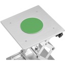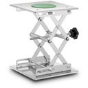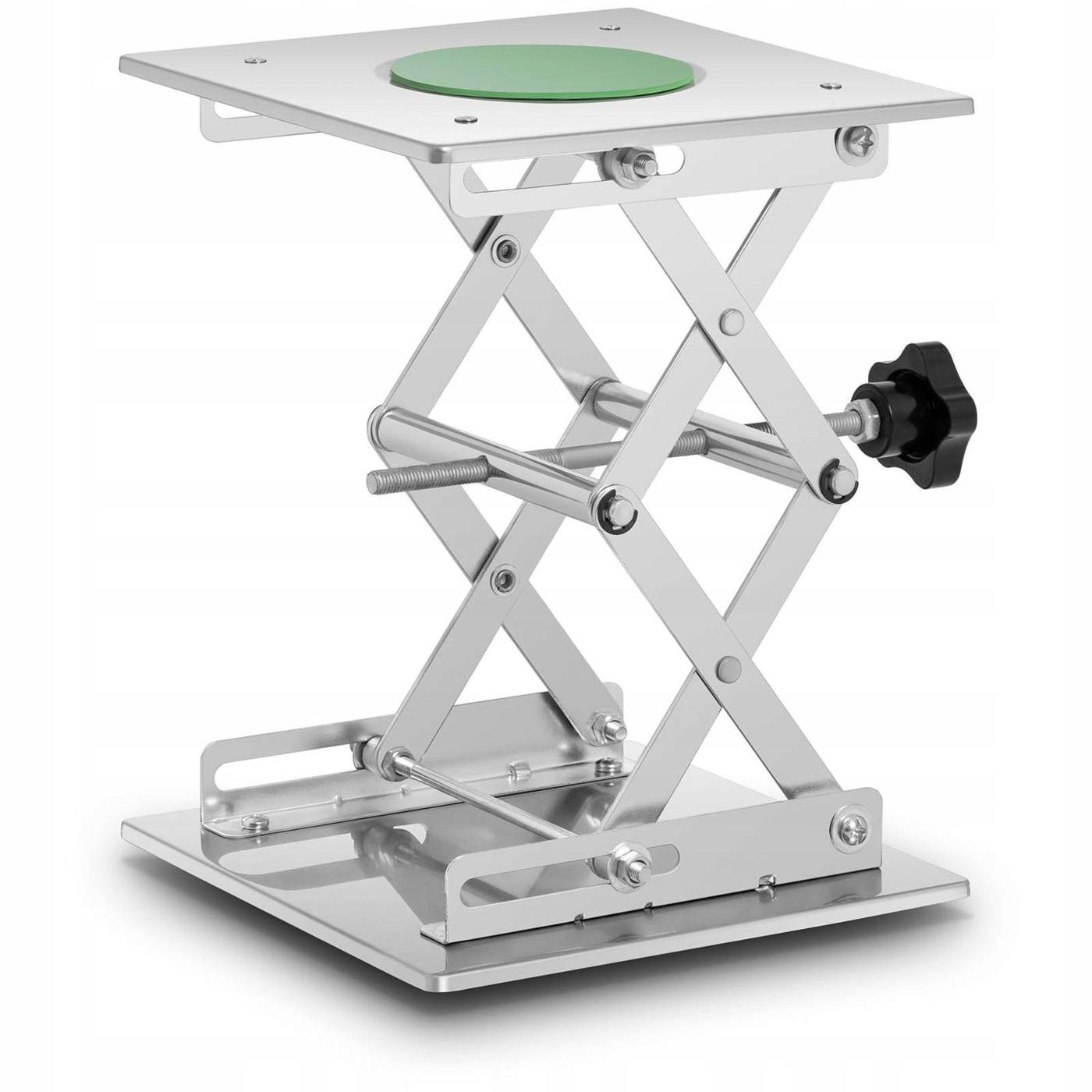 Прочная платформа о поверхность 20 х 20 см выдерживает грузоподъемность до 5 кг. Она была сделана, как и подставка, из аустенитная нержавеющая сталь, поэтому она устойчива к коррозии, а также к действию кислот и правил. Опора и винт, в свою очередь, были изготовлены из прочной углеродистой стали.