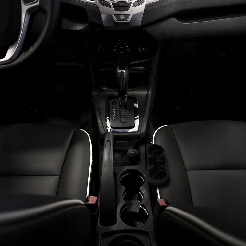 Подстаканник легко устанавливается между сиденьями. Сборка чрезвычайно проста. После просто вставьте ручку между сиденьем, и все готово! Подходит для большинства типов автомобилей. Имеет 5 отверстий, два больших для чашек, банок или бутылок. Между ними есть карман для телефона или другие мелкие мелочи, например монеты. Он также имеет два небольших отверстия для ручек.