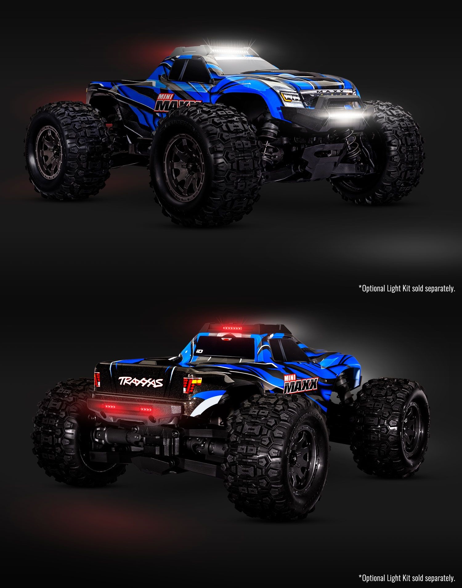 Traxxas oferuje zestaw oświetlenia, który można łatwo zamontować w MiniMaxxie, dodając pojazdowi realistyczny wygląd. Wbudowane diody LED zapewniają intensywne światło, które umożliwia jazdę w ciemnościach, a także dodaje modelowi prawdziwego charakteru. Dodatkowo, oświetlenie podkreśla dynamiczny design pojazdu, sprawiając, że MiniMaxx wygląda niesamowicie, zwłaszcza podczas nocnych przejażdżek.