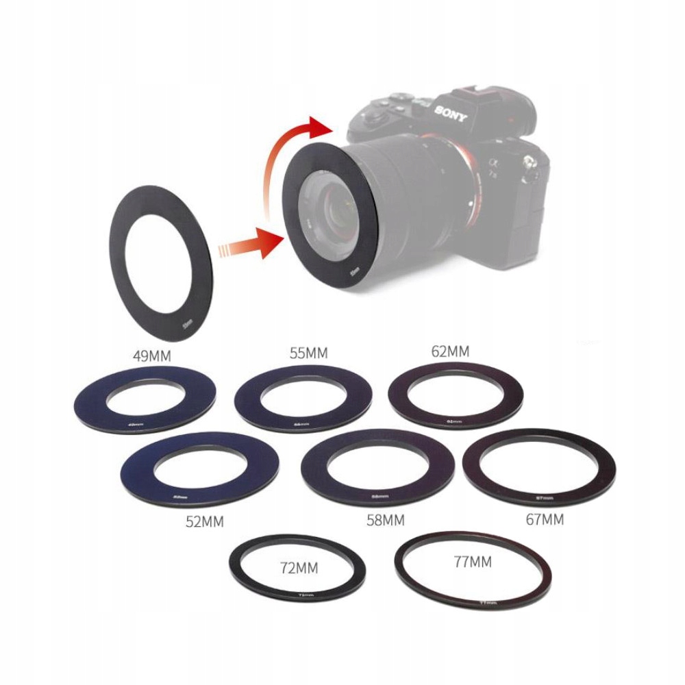 8 pierścieni adapterów do obiektywów (49 / 52 / 55 / 58 / 62 / 67 / 72 / 77 mm) – zestaw kompatybilny z większością popularnych obiektywów dostępnych na rynku. Niezależnie od sprzętu, z którym pracujesz — TP2A z łatwością się dopasuje.
