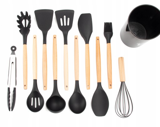 Zestaw kuchenny 12-elementowy zawiera profesjonalne akcesoria silikonowe idealne do gotowania. Komplet spełnia wszystkie potrzeby kulinarnych entuzjastów, obejmując narzędzia do mieszania, odcedzania, nakładania i przewracania składników. Każdy element został zaprojektowany z myślą o funkcjonalności i trwałości, umożliwiając gotowanie jak prawdziwy profesjonalista.