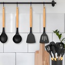 Zestaw wykonany z miękkiego silikonu zapewnia ochronę naczyń kuchennych, a jego nieprzywierające końcówki ułatwiają czyszczenie. Zestaw wytrzymuje temperatury do 230°C, co oznacza, że nawet w gorącym środowisku nie ulegnie deformacji ani stopieniu. Możesz bez obaw pozostawić go na chwilę w garnku podczas gotowania.