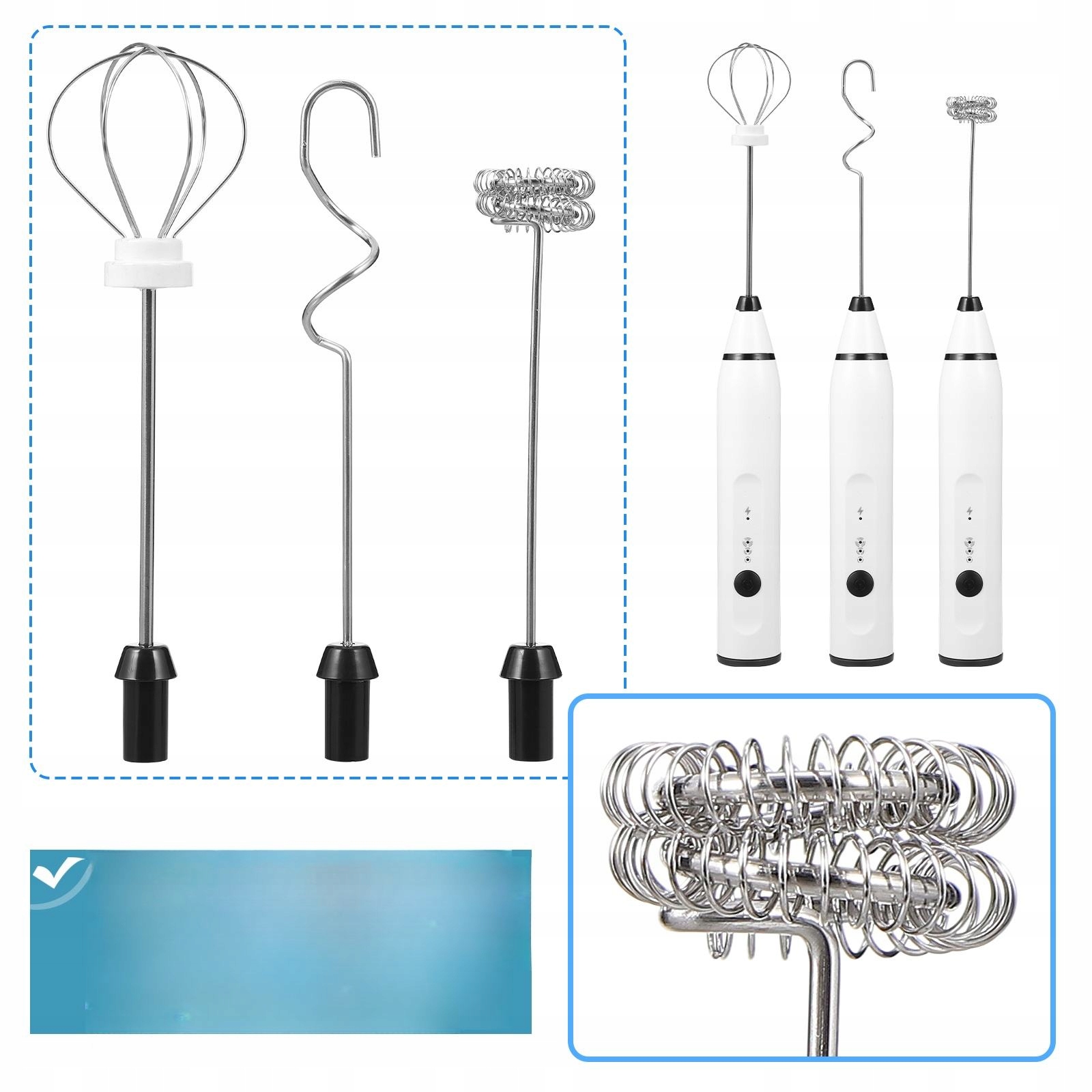 ✅1 x mikser elektryczny 3 x głowice trzepaczki 1 x kabel ładujący