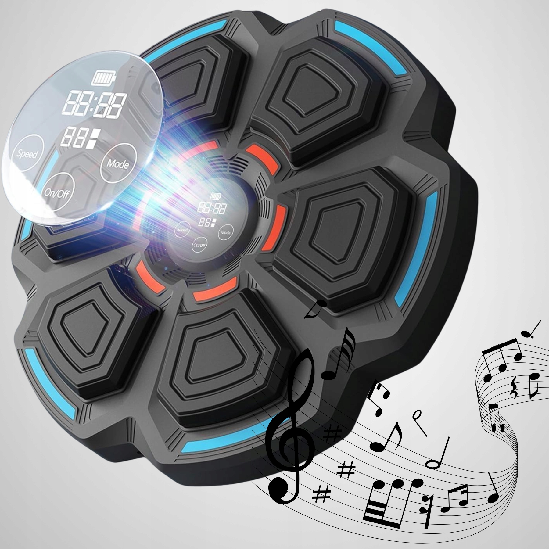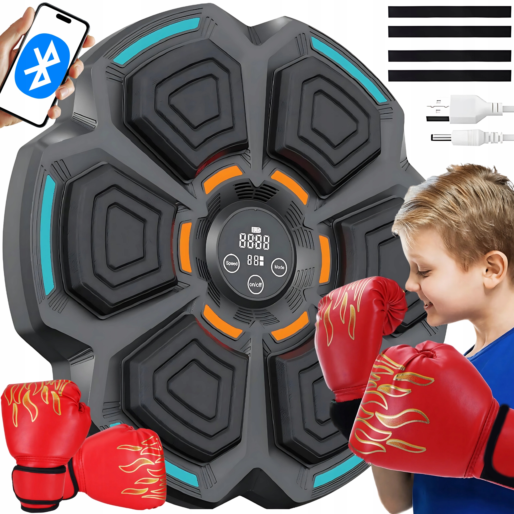 Chcesz poprawić refleks, szybkość i precyzję uderzeń, a przy tym świetnie się bawić? Muzyczna Tarcza Bokserska to inteligentne urządzenie treningowe, które łączy dynamiczny trening z interaktywną rozrywką. Dzięki funkcji Bluetooth I systemowi podświetlenia LED możesz ćwiczyć w rytm muzyki i cieszyć się nowoczesnym, angażującym treningiem.