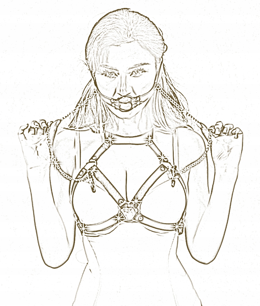 ✴️Do knebla przymocowane są zaciski na sutki połączone eleganckimi łańcuszkami, które dodają ekscytującej pikanterii, a ich regulacja pozwala kontrolować intensywność doznań.