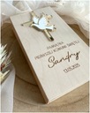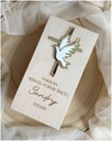 Pamiątka Komunii Świętej w formie oryginalnego drewnianego pudełka to unikalny pomysł na prezent z okazji Pierwszej Komunii Świętej. Produkt wykonany jest z drewnianej sklejki, złotego lustrzanego krzyża w który wpleciony jest niezwykle symboliczny, biały gołąb.