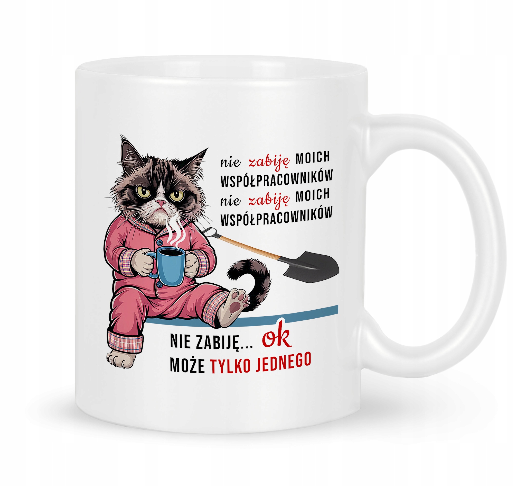 Тематика, тема Kubek z Nadrukiem Grafiki Śmieszny Prezent Upominek do Pracy Biura dla Koleżanki Kolegi. Kubki z zabawnymi lub motywującymi napisami.