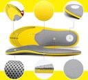 Innowacyjne wkładki do butów, wykonane z miękkiej pianki o grubości 3 mm. Warstwa piankowa skutecznie rozprasza do 95% wstrząsów generowanych podczas każdego kroku, zwłaszcza na twardych powierzchniach.