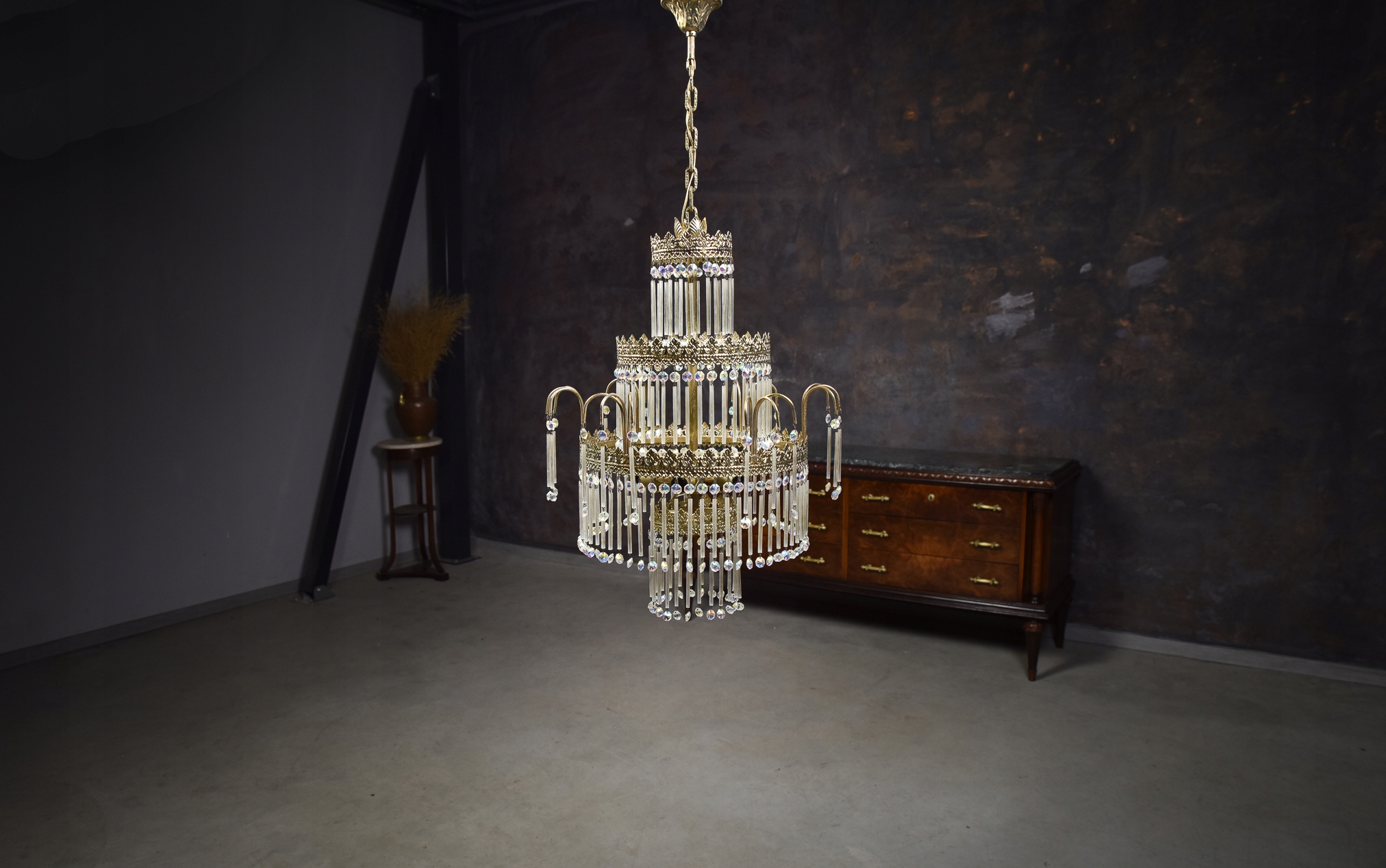 Zapraszam na aukcję zabytkowego żyrandola mosiężnego, który został pięknie ozdobiony prawdziwymi kryształami. Żyrandol jest po gruntownej renowacji, prezentuje się wspaniale, emanując pięknem i elegancją. Jego pałacowy wygląd doskonale nadaje się do reprezentacyjnych wnętrz, dodając im szlachetnego uroku.
