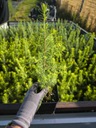 Roślina posiada liczne, rozgałęzione pędy, gęsto pokryte krótkimi, zaostrzonymi igłami, układającymi się wzdłuż pędu. Młode igły mają jasnozieloną barwę, z czasem jednak stają się ciemnozielone i błyszczące.