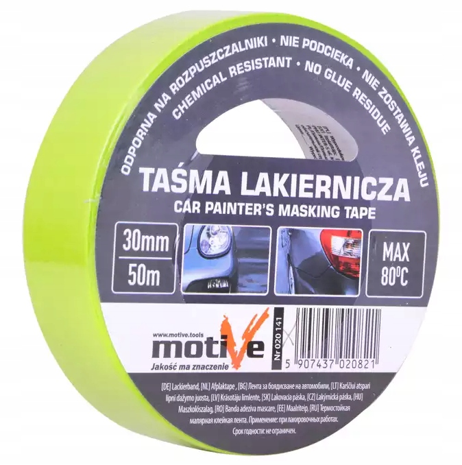 Taśma malarska lakiernicza wykonana jest z japońskiego papieru ryżowego WASHI odpornego na wilgoć. Mocny klej idealnie sprawdzi się podczas malowania natryskowego, gdzie istnieje ryzyko poderwania farby. Jednocześnie łatwo ją usunąć, a ponadto nie pozostawia śladów kleju.