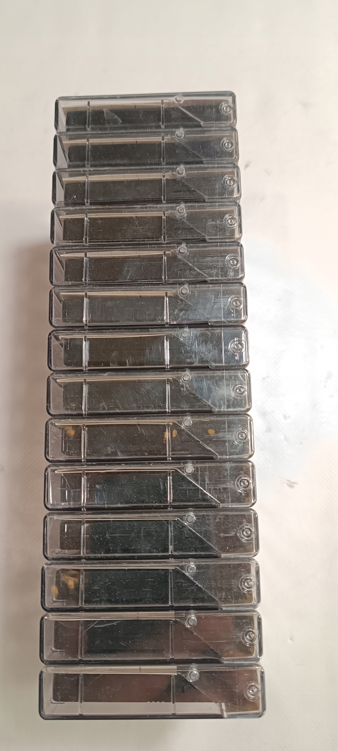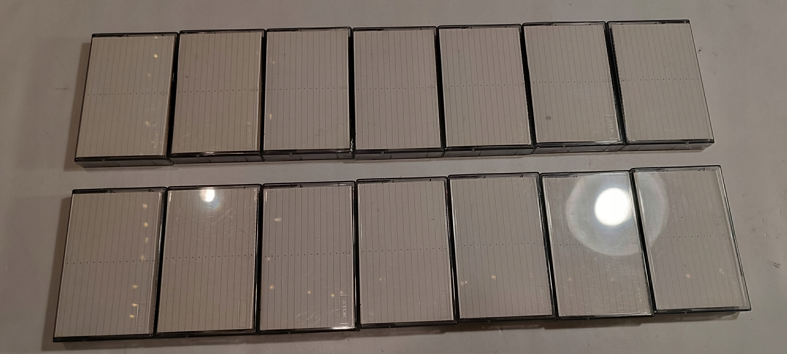 Kasety są praktycznie jak nowe. Brak pęknięć czy uszkodzeń. Minimalne ślady użytkowania.
