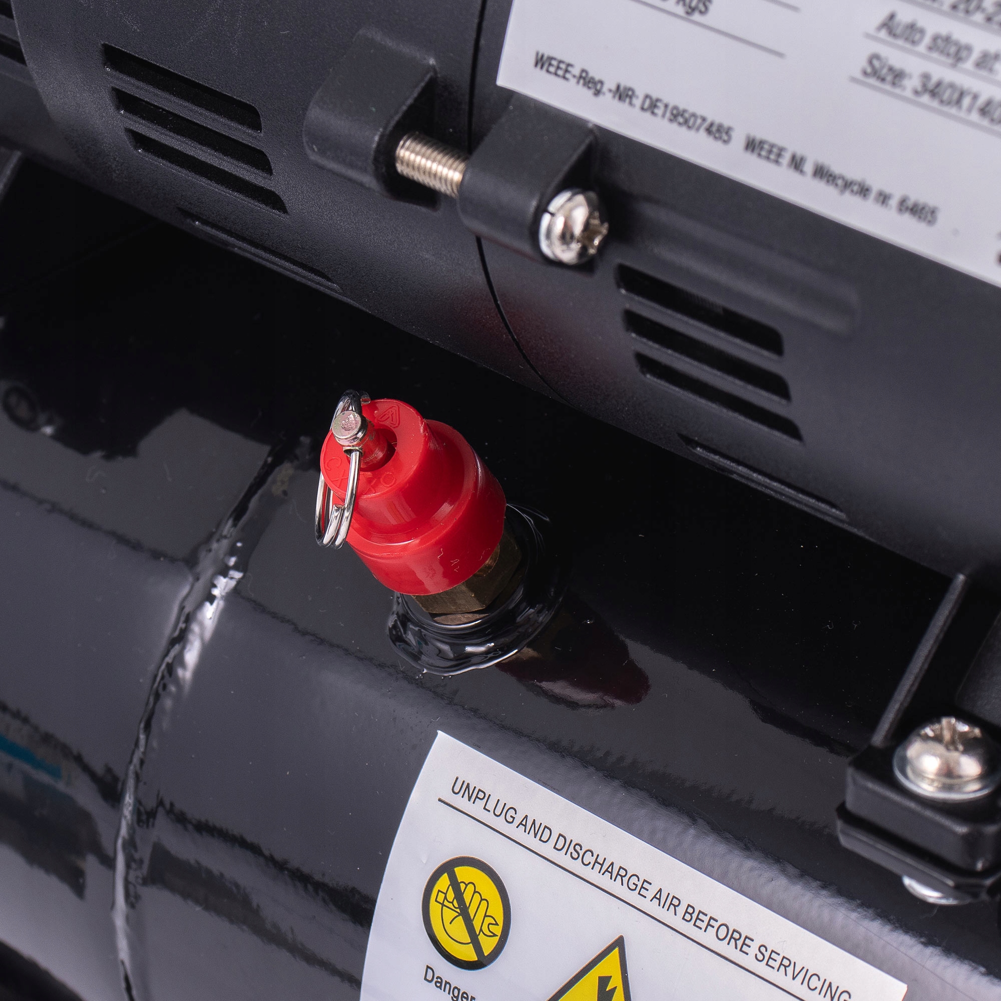 Należy jedynie pamiętać o cyklicznym spuszczaniu wody ze zbiornika - woda skraplająca się z butli to całkowicie normalna sprawa podczas pracy ze sprężonym powietrzem. Spuszczanie wody jest wygodne i szybkie za pomocą jednego zaworu w butli.