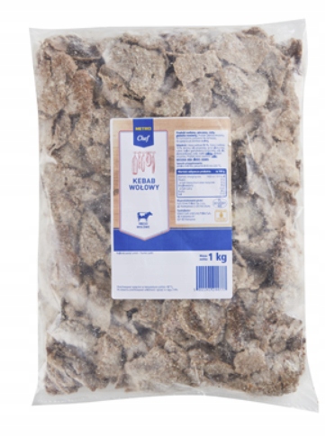 mięso wołowe 86 %, tłuszcz wołowy 10 %, skrobia, sól, przyprawy, syrop glukozowy, cukier, bulion granulowany, przyprawy, sól,