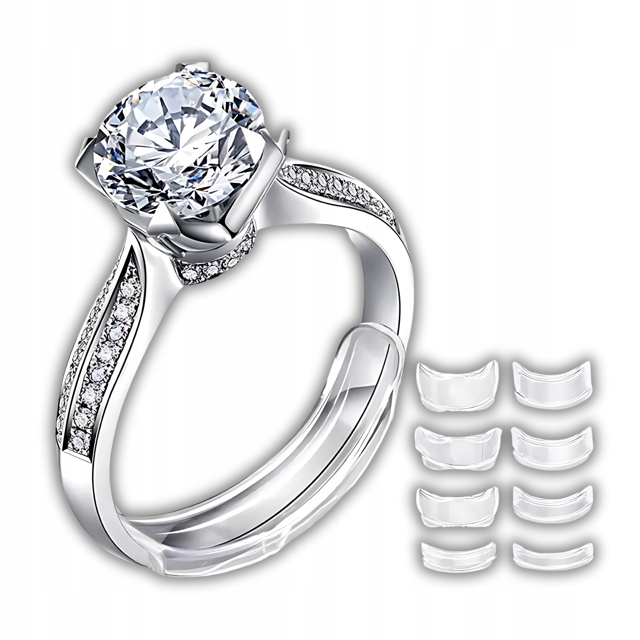 Zestaw zawiera 8 niewidocznych regulatorów, które umożliwiają łatwą i precyzyjną regulację rozmiaru pierścionka bez konieczności wizyty u jubilera.