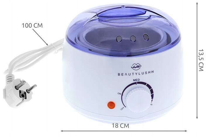 Podgrzewacz posiada płynną regulację temperatury obsługiwaną za pomocą poręcznego pokrętła. Urządzenie szybko rozgrzewa wosk, a dzięki pokrywce, utrzymuje stałą temperaturę. Urządzenie posiada diodę kontrolną, dzięki której wiadomo kiedy urządzenie osiągnęło odpowiednią, wybraną przez nas, temperaturę. Podgrzewacz nie wymaga ciągłego kontrolowania czy wosk jest już rozpuszczony.