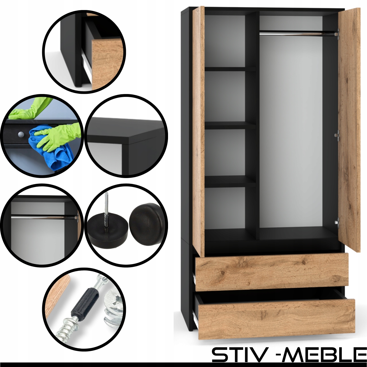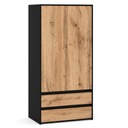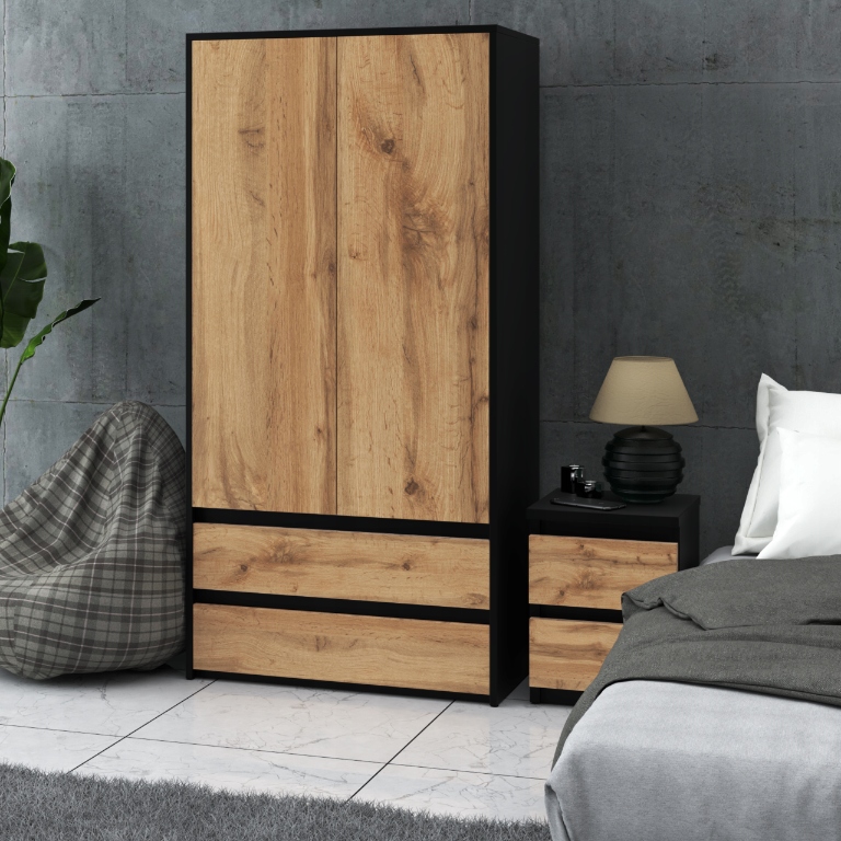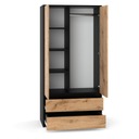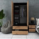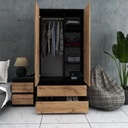Nowoczesna bezuchwytowa szafa w kolorze Czarny Dąb Wotan to idealne rozwiązanie do stylowego wnętrza. Prosta, elegancka forma i minimalistyczny styl doskonale komponuje się z zarówno klasycznymi jak i nowoczesnymi aranżacjami. Szafa posiada pojemne szuflady i drzwiczki, za którymi skrywają się półki z drążkiem na ubrania, dzięki czemu zapewnia dużo miejsca na przechowywanie ubrań, pościeli oraz innych domowych akcesoriów.