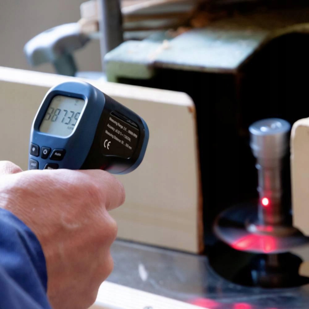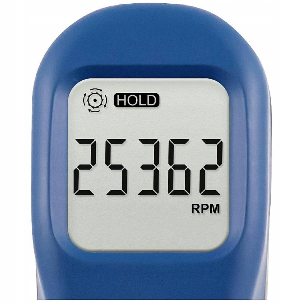 Tachometr PCE-DT 50: ręczny tachometr do 99 999 obr./min / tryb automatyczny / tryb MAX/MIN/AVG / podświetlany wyświetlacz LCD / funkcja zatrzymania danych. Ręczny obrotomierz PCE-DT 50 w formie pistoletu jest idealny do szybkiego sprawdzania prędkości. Ten ręczny obrotomierz mierzy bezdotykowo prędkość obrotową poruszających się obiektów, takich jak wały, napędy, zębniki itp. Ręczny obrotomierz wykorzystuje laser, który emituje światło, oraz diodę odbiorczą, która rozpoznaje kontrast jasno-ciemno odbitego światła. Tachometr ręczny mierzy prędkość w zakresie 2,5... 99.999 obr./min (obr./min). Prędkość jest pokazywana na podświetlanym wyświetlaczu obrotomierza. Odległość pomiaru od tachometru ręcznego wynosi 50... 500 mm W tachometrze ręcznym dostępne są 2 różne tryby pomiaru: ręczny tryb pomiaru i automatyczny tryb pomiaru. W trybie pomiaru ręcznego mierzy tak długo, jak wciśnięty jest spust. W trybie automatycznym pomiary są wykonywane do momentu zakończenia trybu automatycznego. Do dalszej oceny zmierzonych wartości dostępny jest tryb MAX, MIN, AVG. Ten tryb automatycznie określa maksymalny, minimalny i średni odczyt.