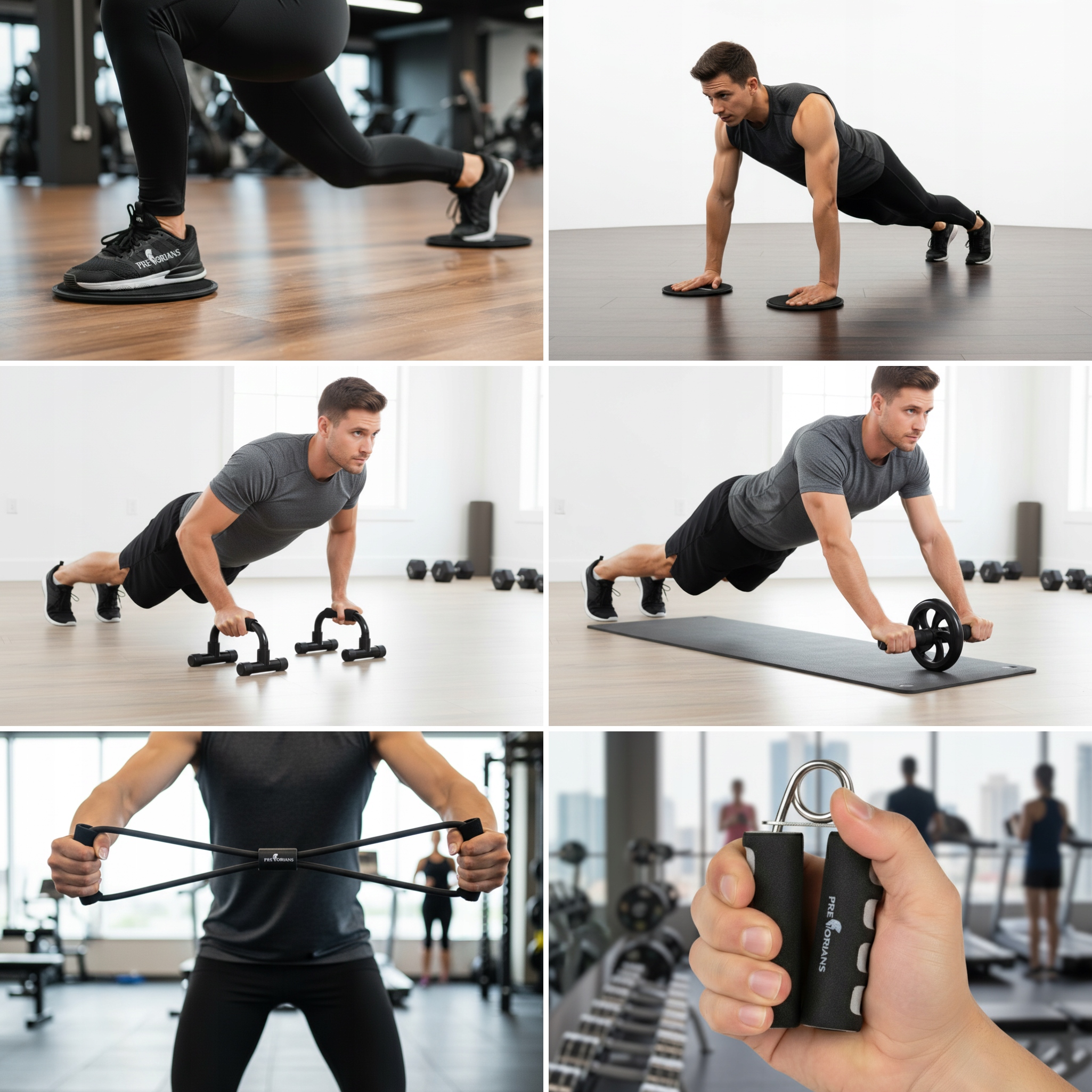 Zestaw 5w1 do ćwiczeń to praktyczne akcesoria, które pozwolą Ci kompleksowo wzmocnić mięśnie całego ciała.