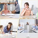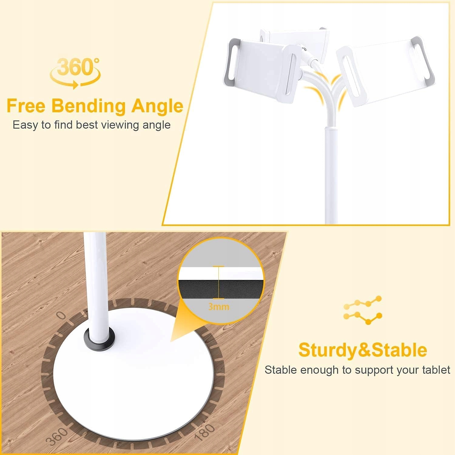 Uchwyt na telefon ma elastyczne ramię typu gęsia szyja o długości 15 cm z głowicą kulową obracającą się o 360 stopni, która zapewnia wielokierunkowy kąt widzenia. Wysokość można łatwo regulować w zakresie od 22,7 cm do 31 cm. Można łatwo dostosować do wygodnego kąta w każdych okolicznościach, co zapewnia wygodę podczas oglądania, co pomaga naprawić postawę i zmniejszyć obciążenie szyi i pleców.