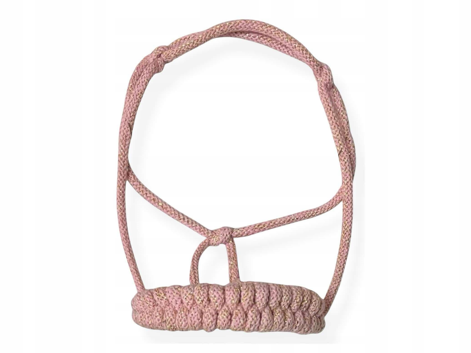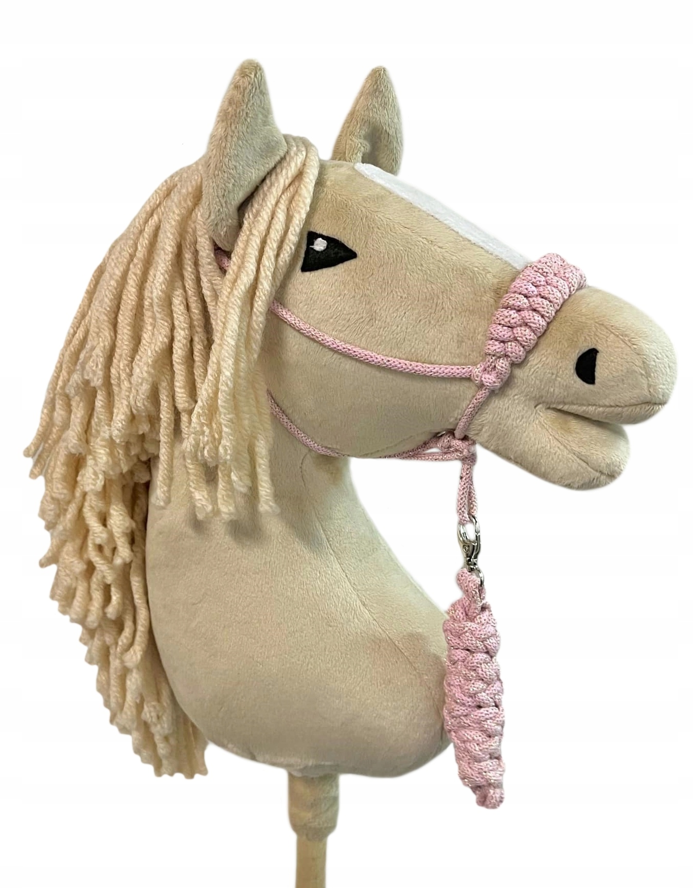 Halter wykonany z różowego sznurka ozdobionego makramą. Dedykowany dla Hobby Horse w rozmiarze A3. Posiada oczko do zapięcia uwiązu.