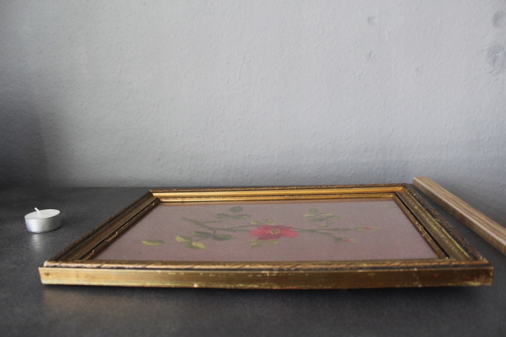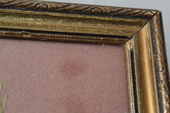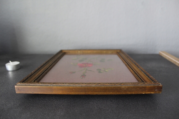 STARY OBRAZ, ZŁOCONA DREWNIANA RAMA, SZYBKA,