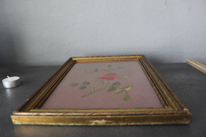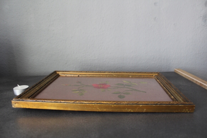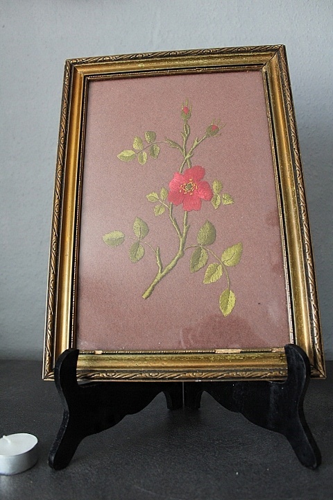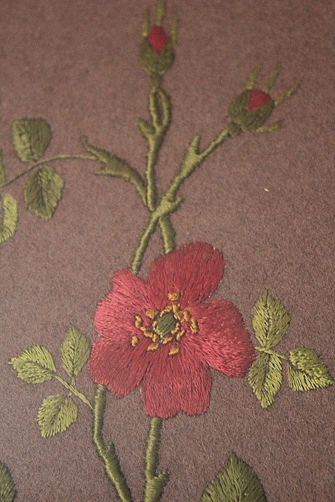 RĘCZNIE HAFTOWANY, NA BRĄZOWYM PODBICIU- GAŁĄZKA RÓŻY