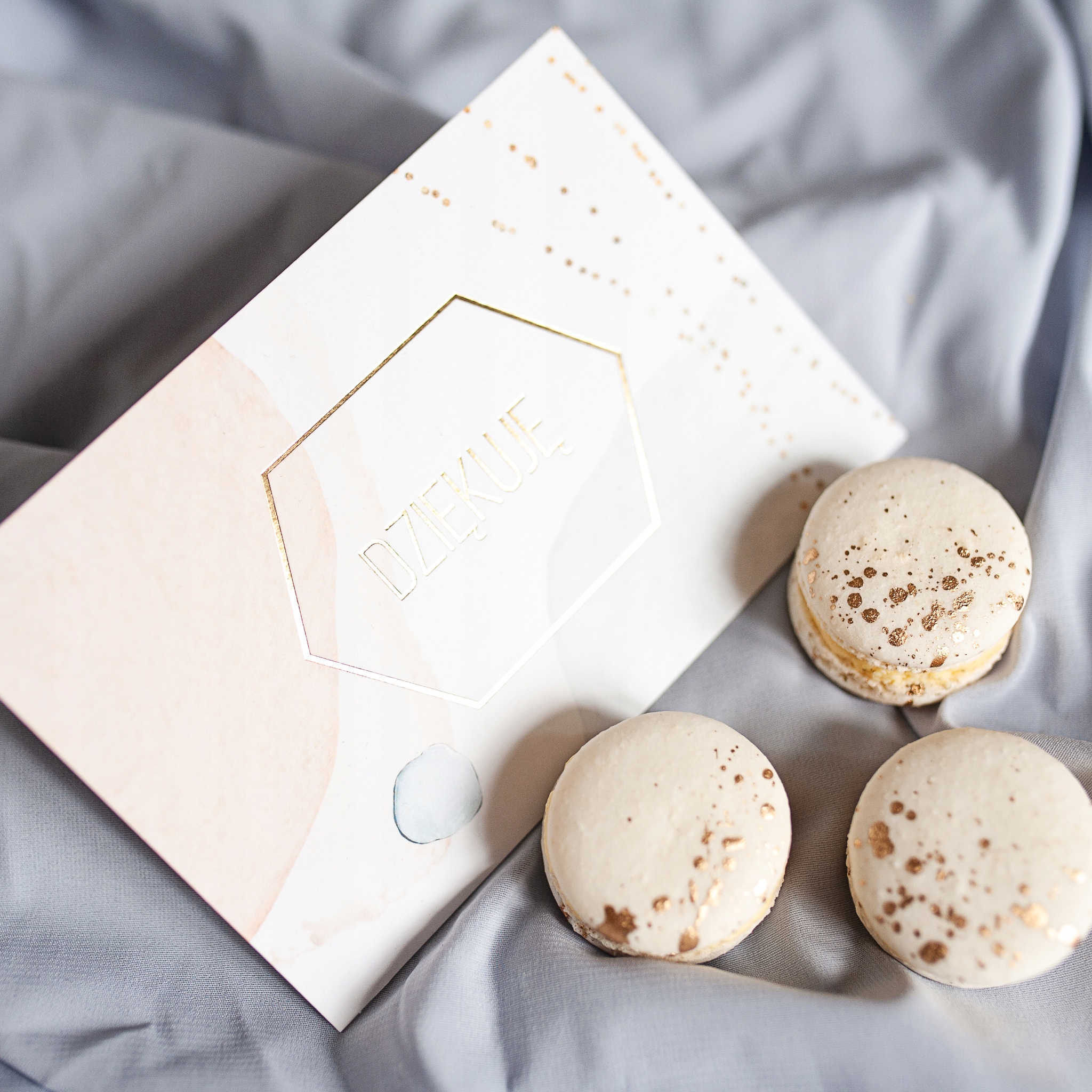 ✔ Przód: złoty napis „Dziękuję” w eleganckim stylu.