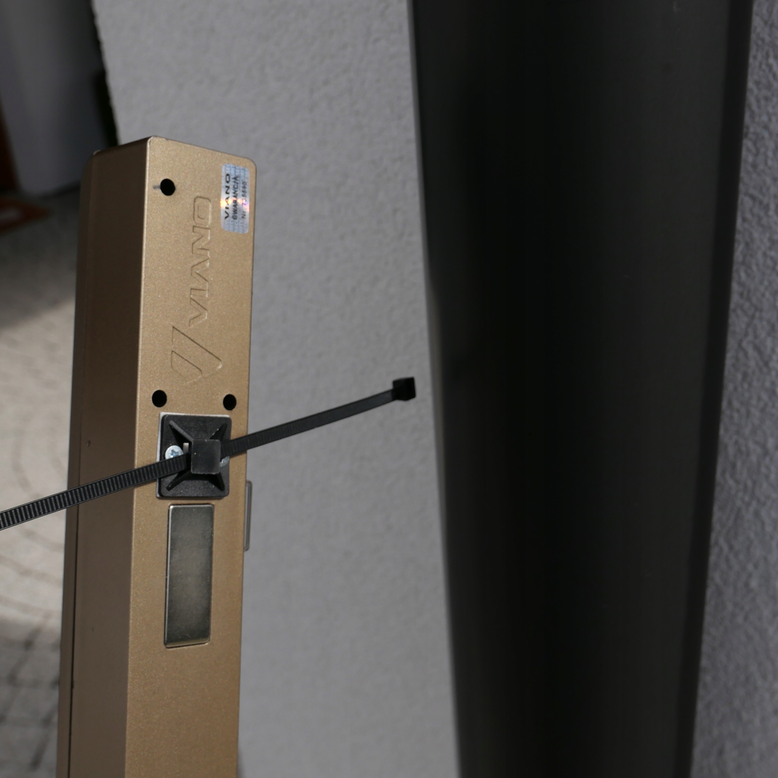 (2) W zestawie z urządzeniem otrzymujemy plastikowe adaptery, które umożliwiają montaż urządzenia za pomocą opasek zaciskowych (trytytek). Pozwala to na mocny, pewny montaż do słupków ogrodowych, poprzeczek, rynien itp.