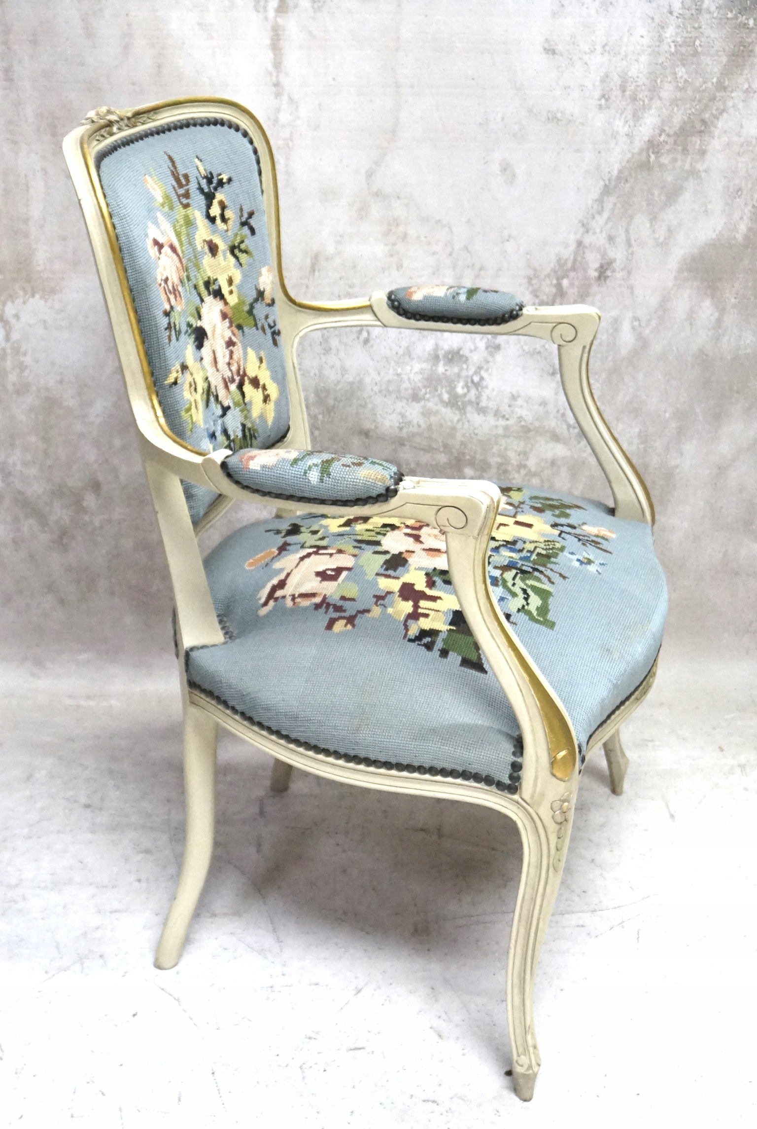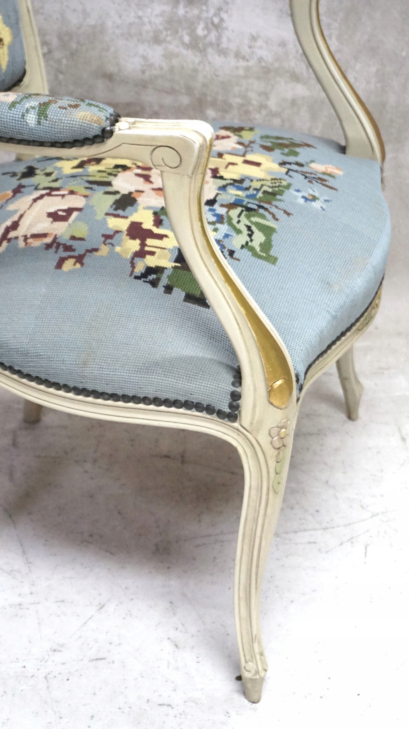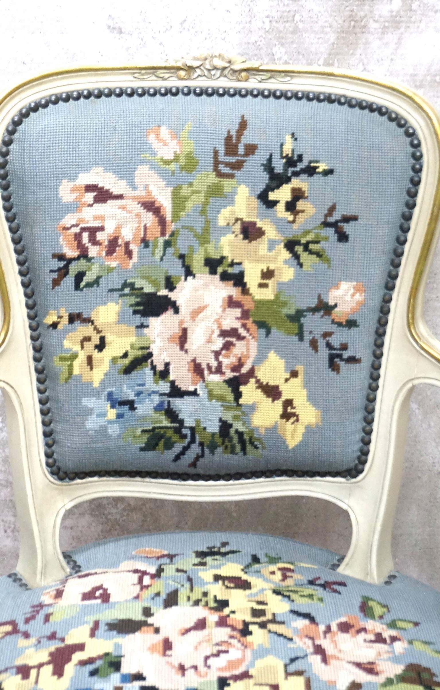 Mebel tapicerowany, tkaniną gobelinową - kolor dominujący niebieski z kwiatowymi motywami