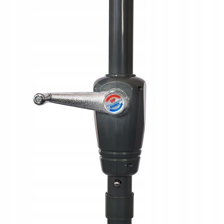 Parasol wyposażony jest w niezawodny mechanizm korbowy, który umożliwia szybkie i bezwysiłkowe składanie oraz rozkładanie. Dodatkowym atutem jest możliwość regulacji kąta nachylenia czaszy, co pozwala idealnie dopasować osłonę do kąta padania słońca.
