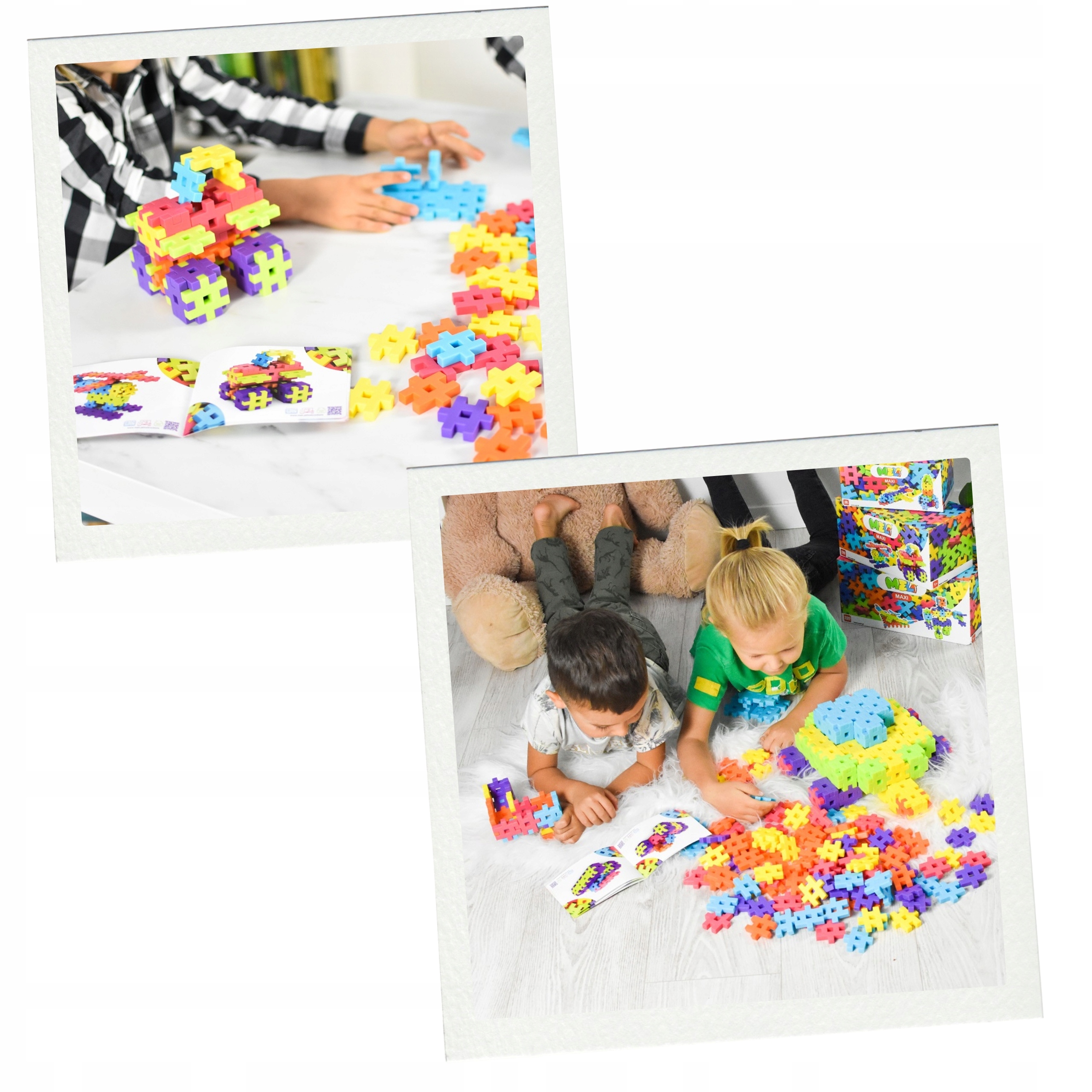 ✅ Możliwość budowania płaskich i przestrzennych konstrukcji – klocki łączą się na płasko lub w formy 3D.