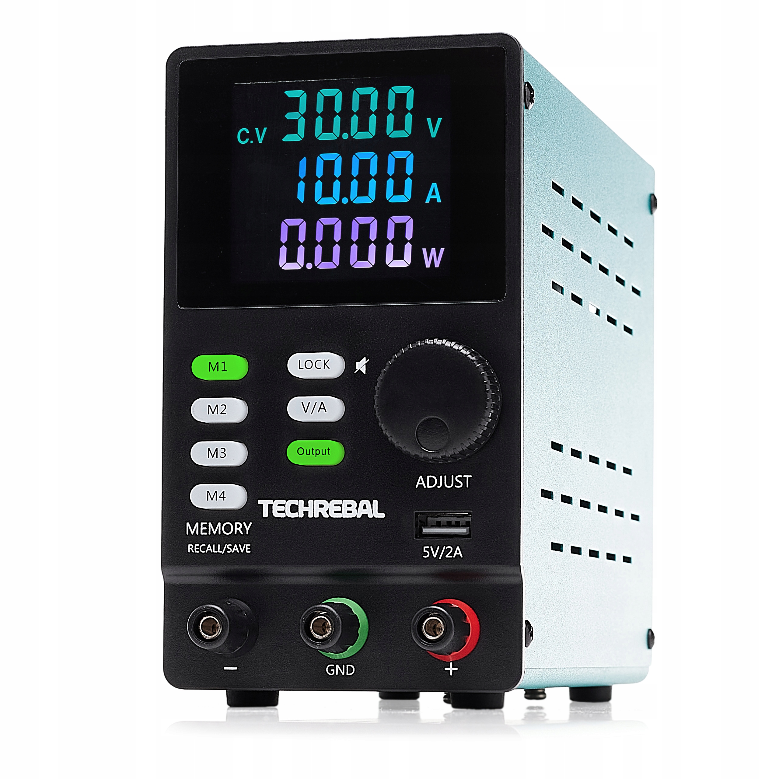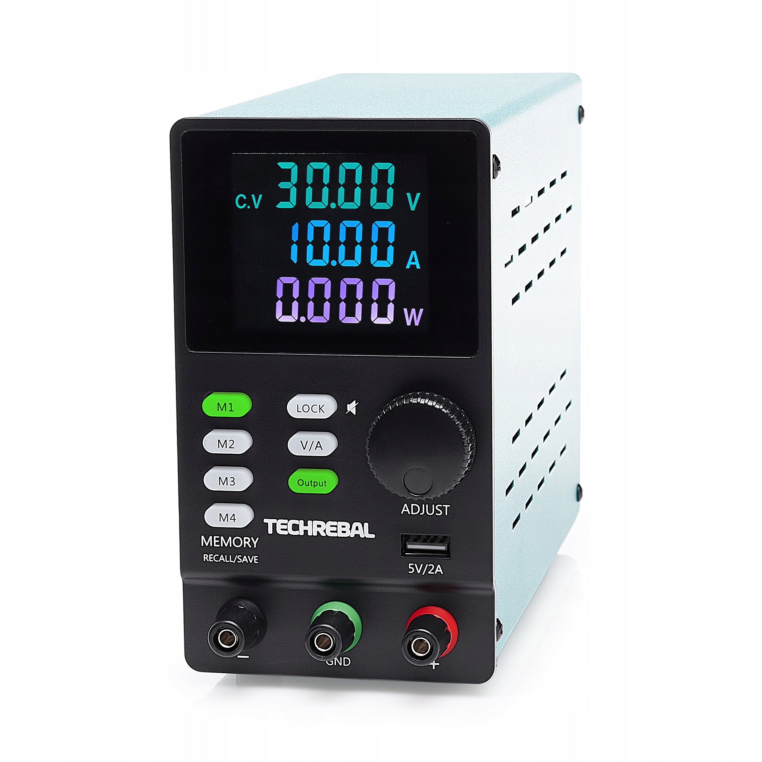 Techrebal SPPS3010D to stabilizowany zasilacz laboratoryjny z płynną regulacją napięcia w zakresie od 0 do 30 V oraz prądu w zakresie od 0 do 10 A. Jego głównymi atutami są wysoka dokładność oraz czytelny wyświetlacz LCD. Zasilacz jest chłodzony cichym wentylatorem regulowanym temperaturą.