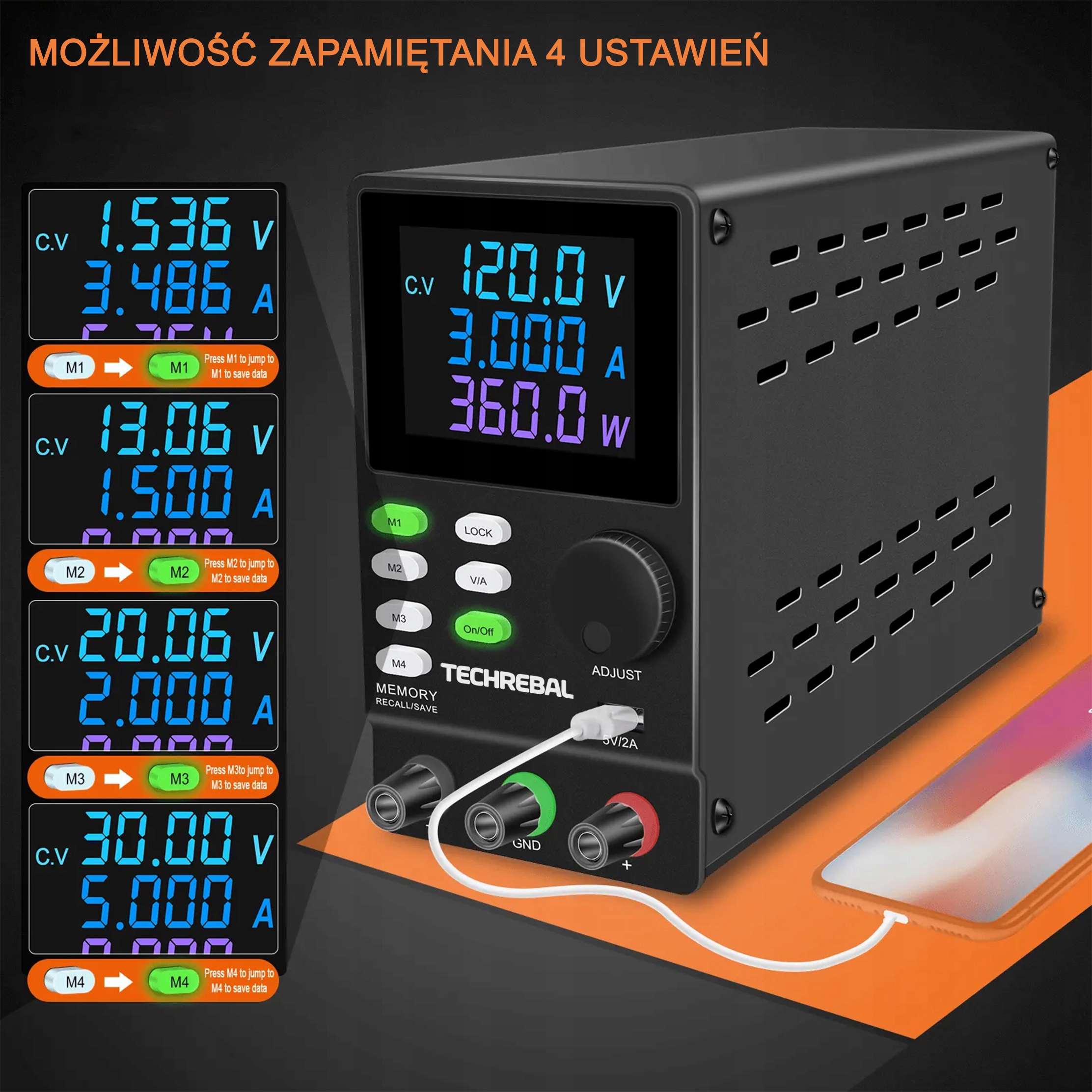 Сервисный блок питания марки Techrebal-незаменимое устройство в любом сервисе идеально подходит для ремонта и питания различных устройств. Он характеризуется точно регулируемым выходным напряжением в диапазоне от 0 до 30 В и максимальная мощность тока 10А и возможность сохранения до 4 настроек. Его универсальность делает его идеальным не только в профессиональном сервисе, но и также в домашней мастерской или во время передовых научных работ. Это незаменимый элемент оборудование, которое позволяет эффективно и точно регулировать мощность в соответствии с потребностями питания устройств.