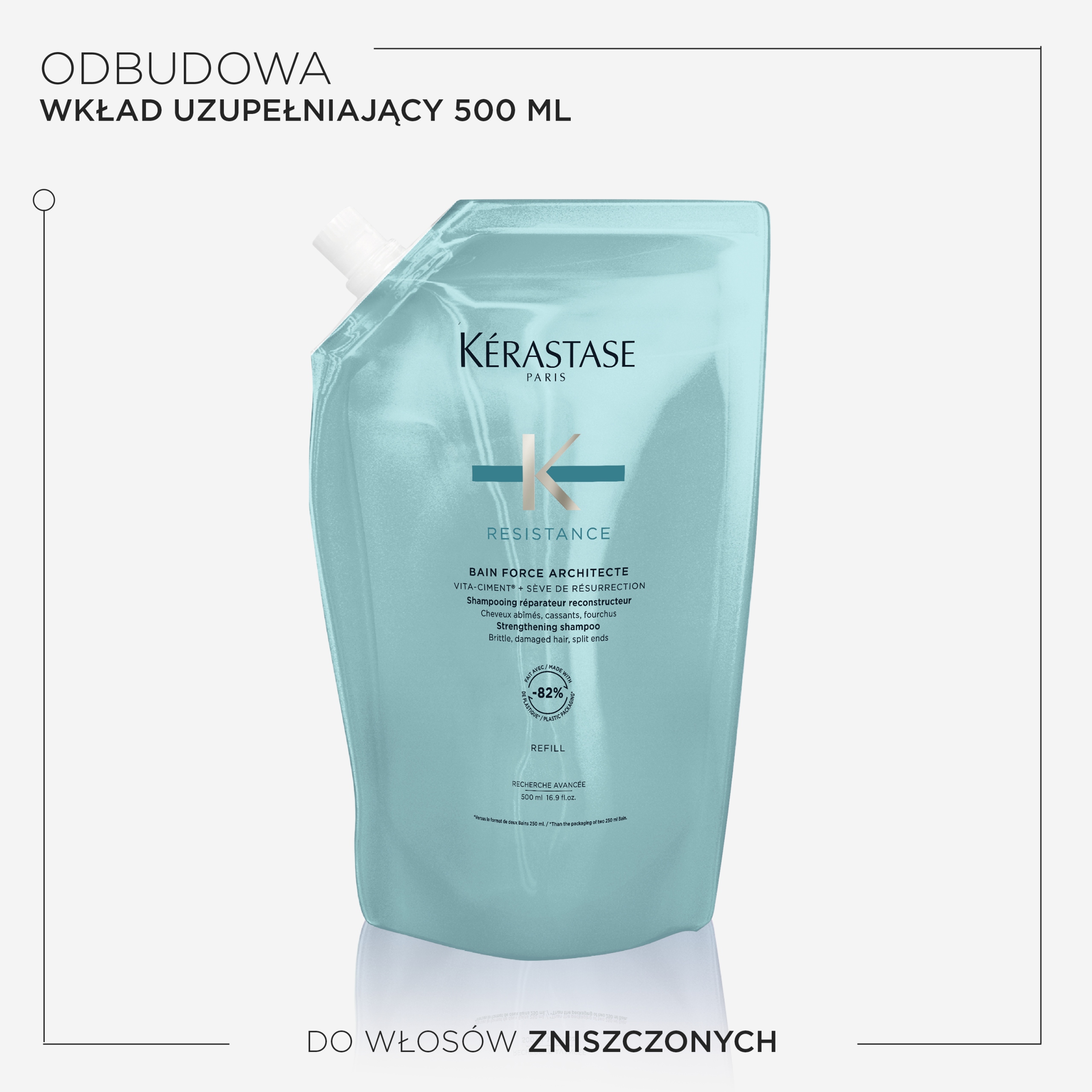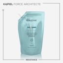 Kérastase Résistance Kąpiel Force Architecte Refill to wzmacniający szampon stworzony specjalnie dla włosów osłabionych i zniszczonych, dostępny w ekologicznym opakowaniu refill. Jego zaawansowana formuła intensywnie regeneruje włosy, odbudowując ich strukturę i wzmacniając je od wewnątrz. Szampon skutecznie naprawia uszkodzone włókna włosów, zapobiegając dalszym uszkodzeniom i łamliwości. Regularne stosowanie sprawia, że włosy stają się silniejsze, bardziej elastyczne i odporne na uszkodzenia. Dzięki zawartości kompleksu Vita-Ciment® oraz ceramidów, Kąpiel Force Architecte odbudowuje włosy od nasady po końce, nadając im zdrowy i pełen blasku wygląd. Ekologiczne opakowanie refill to zrównoważone rozwiązanie, które zmniejsza zużycie plastiku.