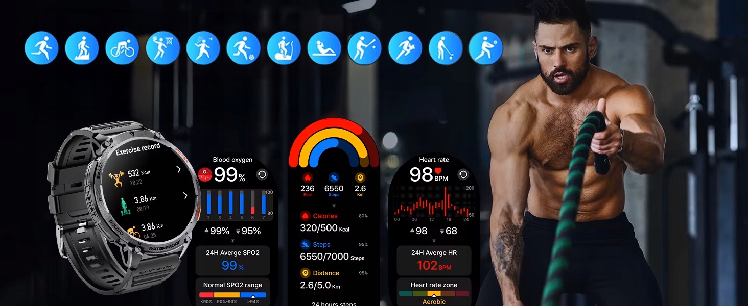 ✅ Zaawansowane funkcje zdrowotne – tętno, saturacja, stres i wiele innych