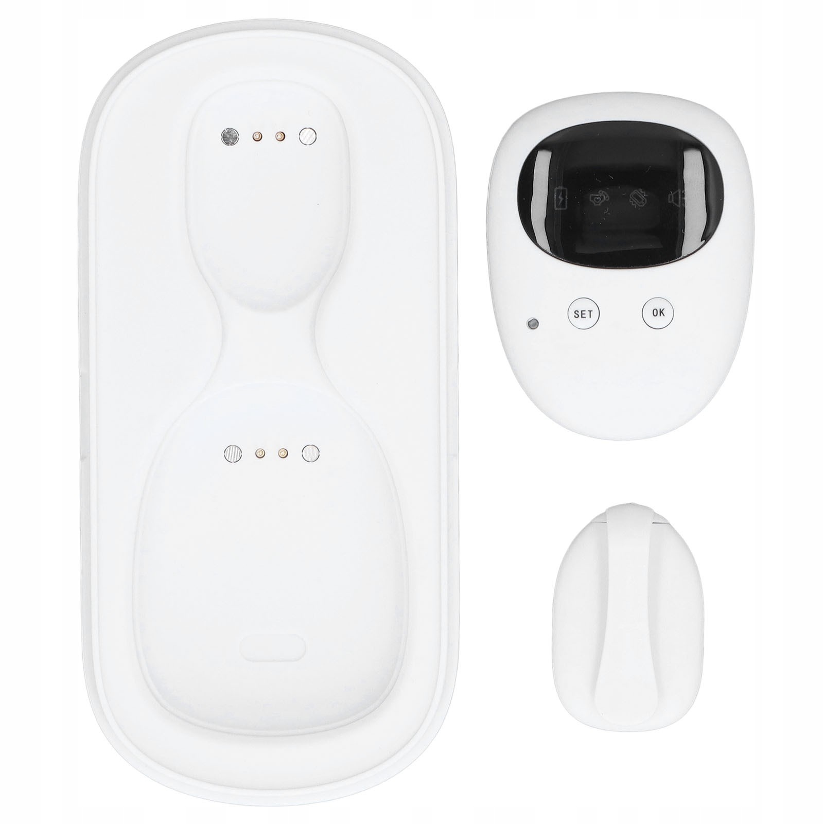 1. Bezprzewodowy alarm moczenia nocnego: czujnik i odbiornik są oddzielone bez irytujących kabli połączeniowych. Rodzice mogą postawić słuchawkę obok poduszki, na stoliku nocnym lub monitorować oddawanie moczu dziecka z innego pokoju.