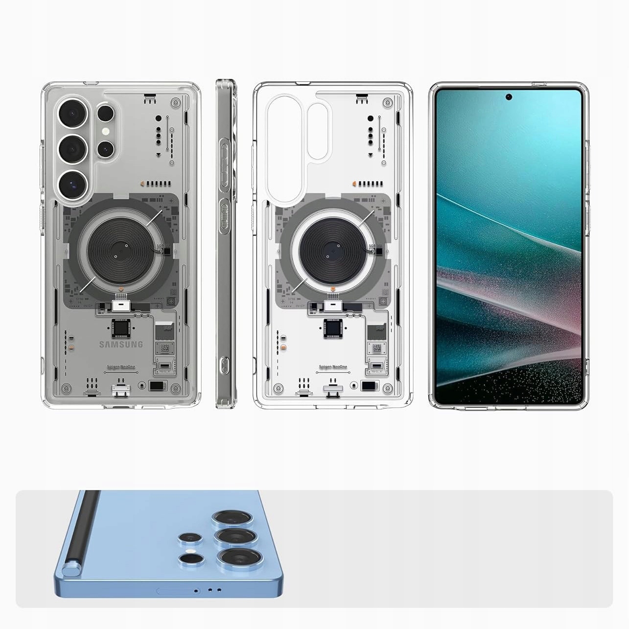 Ultra Hybrid Mag Neo One to świeże podejście do dekonstrukcyjnego stylu, które nawiązuje do wnętrza Twojego telefonu. Dzięki przezroczystej obudowie, nowoczesny wzór inspirowany technologią świetnie współgra z dowolną kolorystyką urządzenia, jednocześnie podkreślając jego wewnętrzną konstrukcję.