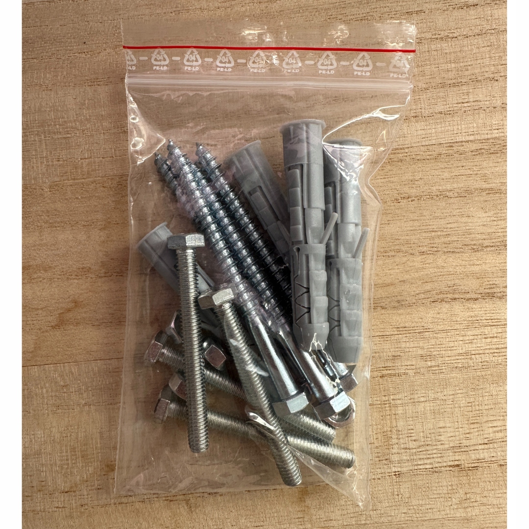 Zestaw zawiera 4 metalowe części, 4 śruby wraz z nakrętkami oraz 4 profesjonalne kołki rozporowe ze śrubami do montażu w ścianie. SFXK-10/60x80 (na klucz 10'')