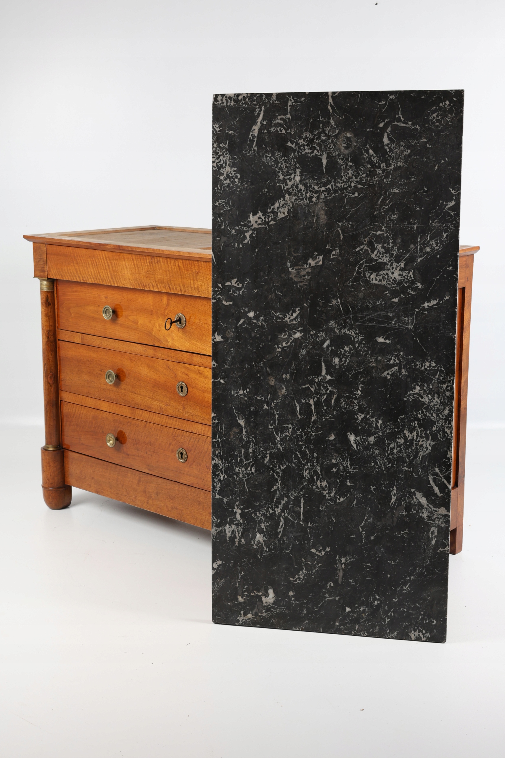 XIX-wieczna komoda w stylu empire z orzecha włoskiego z marmurowym blatem – Francja, 1810