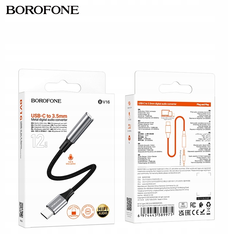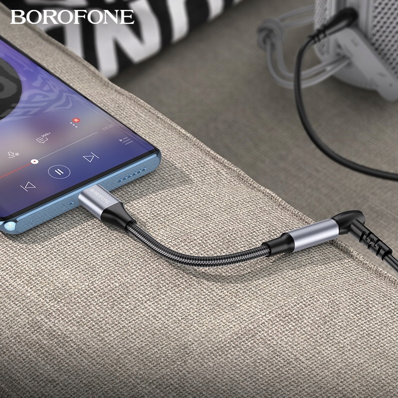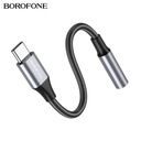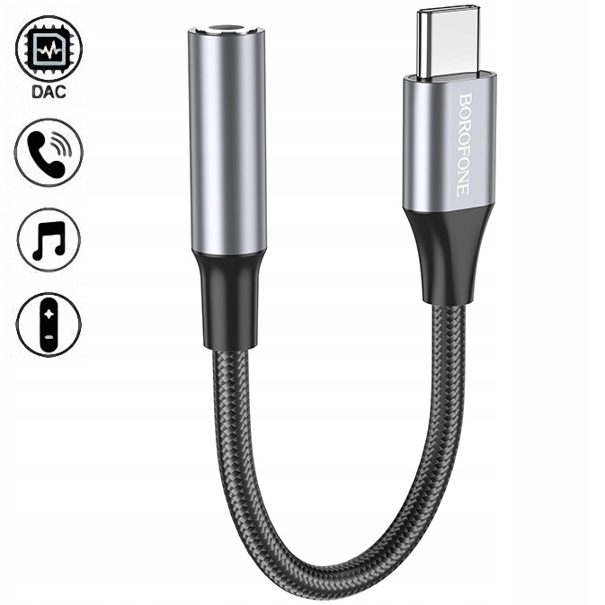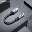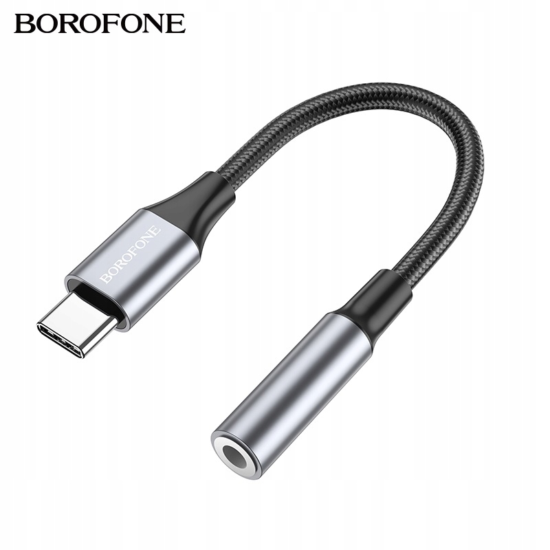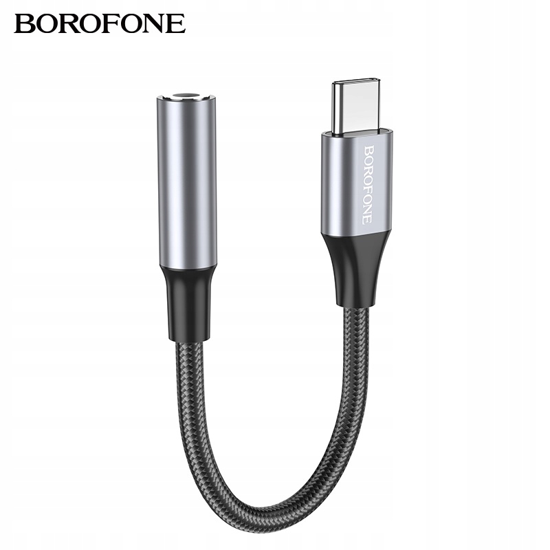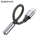 BOROFONE BV16 to cyfrowy adapter / konwerter / przejściówka audio ze złączem AUX Jack 3.5mm i USB Type-C / Typu C / Typ C / USB-C, przeznaczony do podłączenia słuchawek kablowych / przewodowych / sportowych ze złączem audio Jack 3.5mm, z obsługą mikrofonu i pilota ze sterowaniem muzyką i rozmowami do urządzeń mobilnych pozbawionych gniazda słuchawkowego.