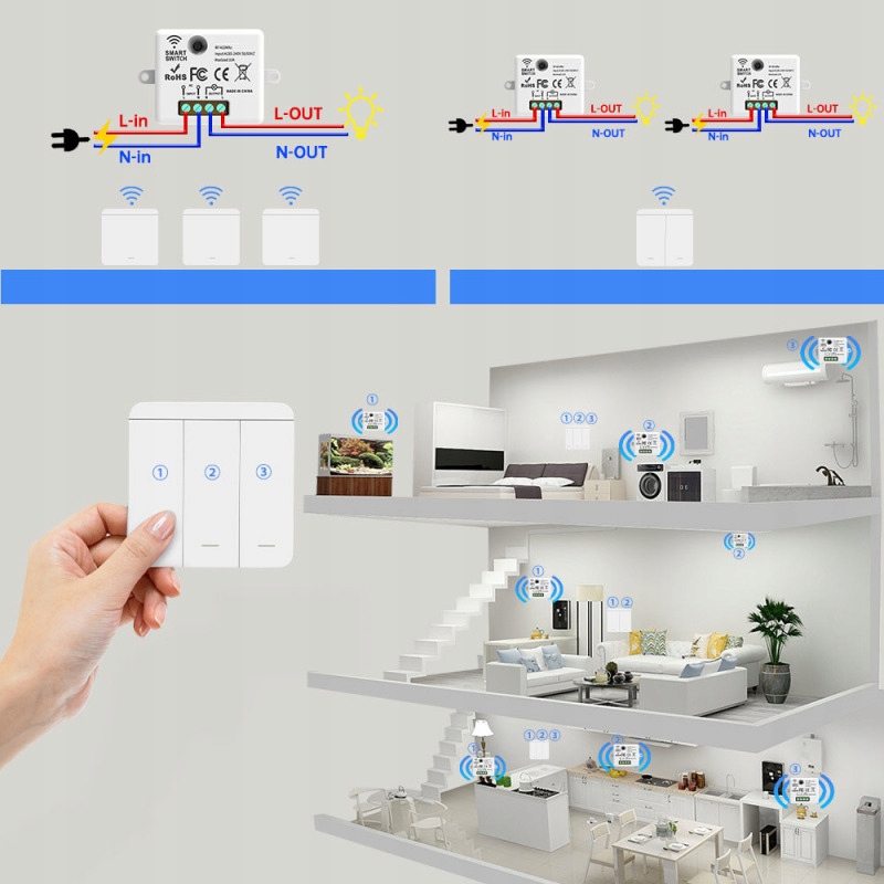 ☛Najważniejsze jest to, że wyłącznik bezprzewodowy można podłączyć do miejsca docelowego, od lokalizacji koryta kablowego