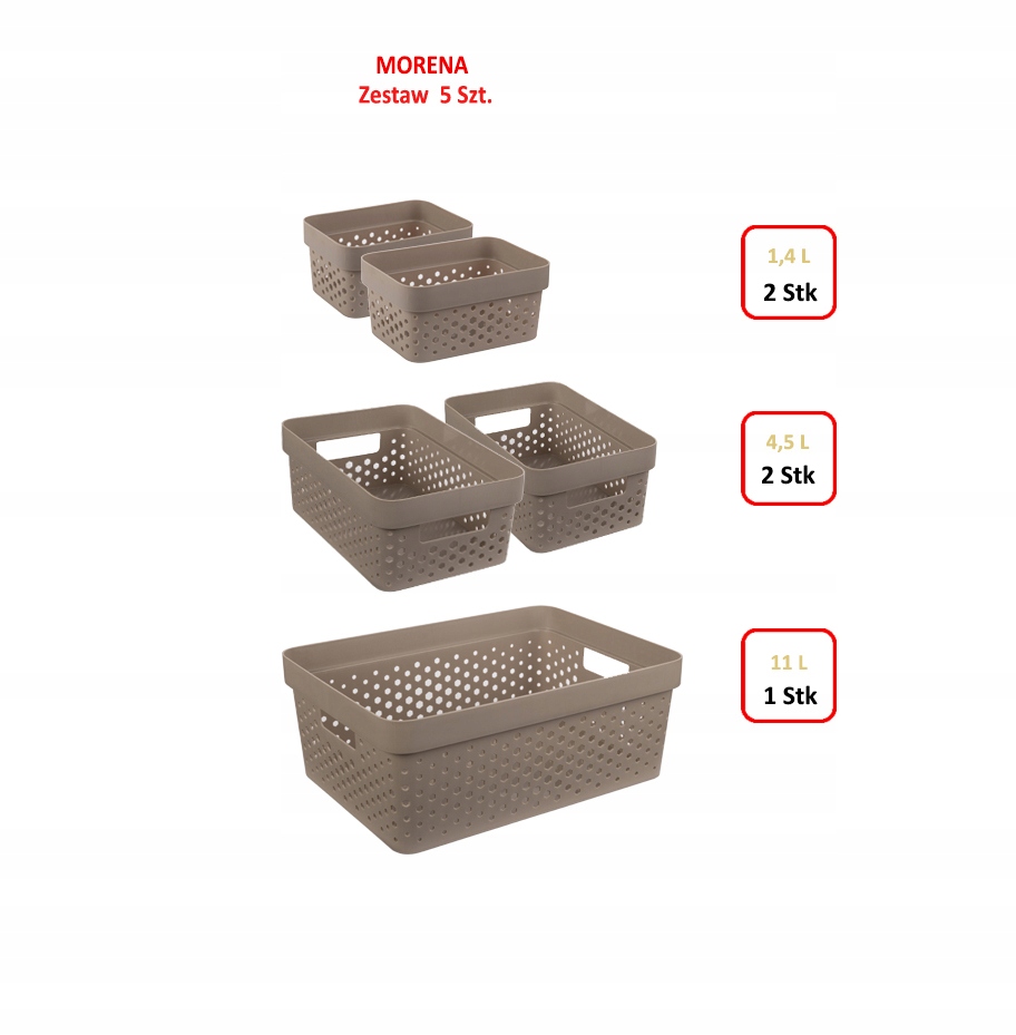 Dzięki minimalistycznej i funkcjonalnej formie zestaw Morena 5 szt. pomoże Ci zachować porządek i organizację w każdej przestrzeni!