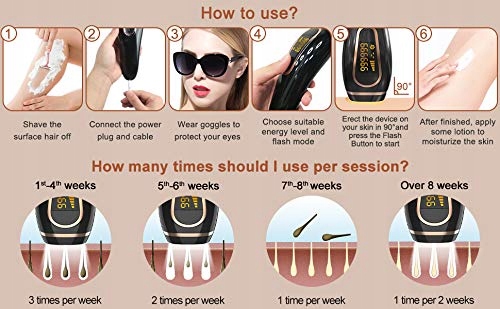 Urządzenie do usuwania włosów IPL ma unikalne 5 regulowanych ustawień poziomu energii, aby zapewnić delikatne, ale skuteczne leczenie. Możesz wybrać dowolny poziom energii (w zależności od indywidualnego odcienia skóry i koloru włosów), im wyższe ustawienie energii wybierzesz, tym lepszy efekt uzyskasz.