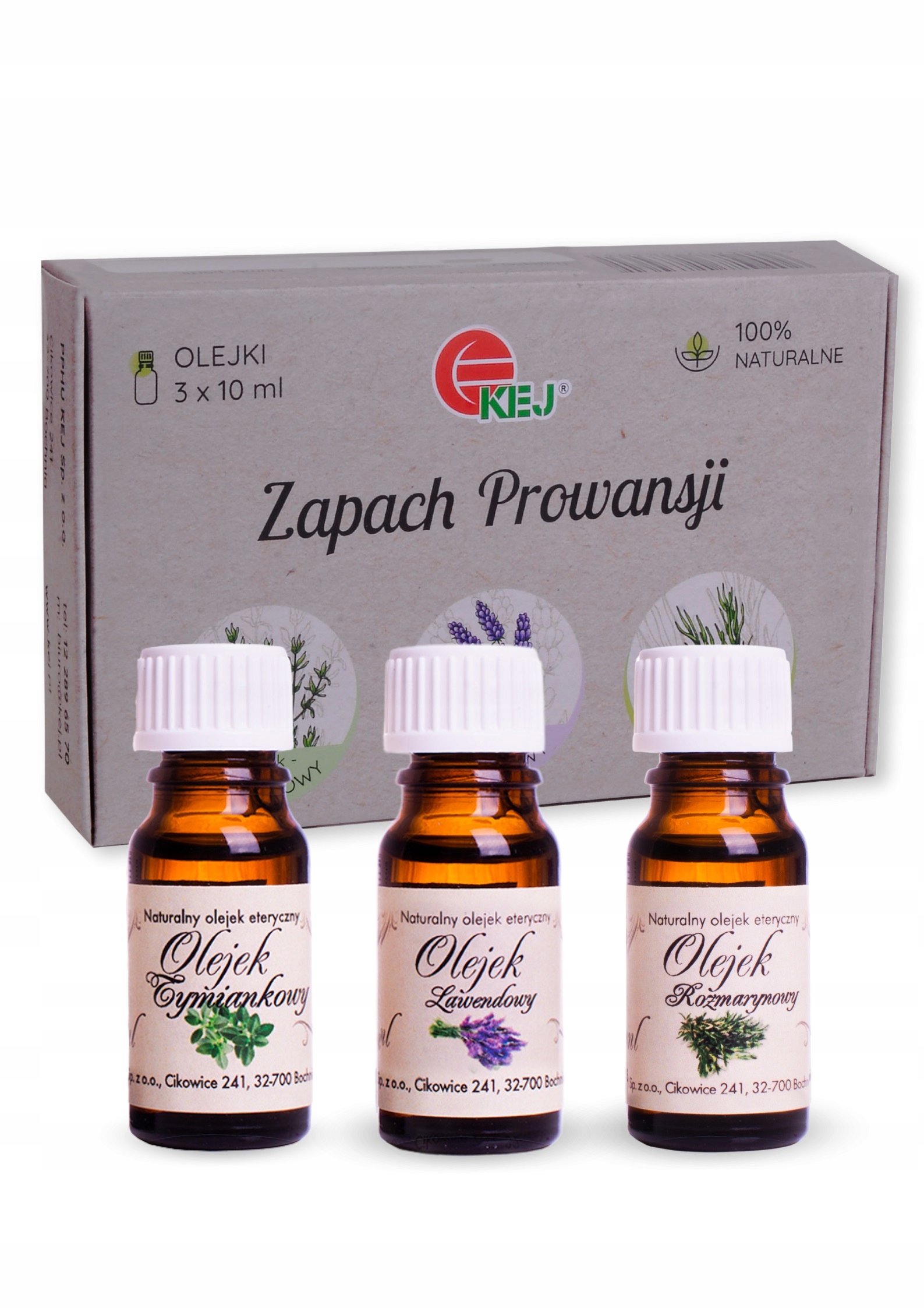 Olejek eteryczny tymiankowy, lawendowy, rozmarynowy (Thymus Zygis Herb Oil, Lavandula Angustifolia Oil, Rosmarinus Officinalis Leaf Oil), podobnie jak pozostałe olejki marki KEJ, zostały wpisane do europejskiej bazy CPNP i posiadają aktualne certyfikaty badań dermatologicznych. Jesteśmy polską, rodzinną firmą. Dzięki ponad 20-letniemu doświadczeniu oraz członkostwu w Polskim Towarzystwie Aromaterapeutycznym, nieustannie dbamy o najwyższe standardy naszych produktów, które są regularnie analizowane w laboratorium. Codziennie udowadniamy, jak wielki potencjał kryje się w aromaterapii.