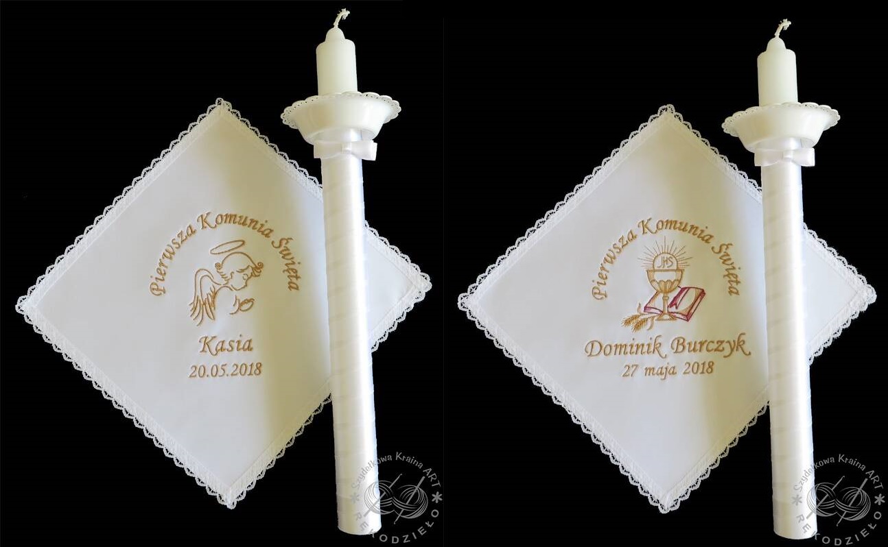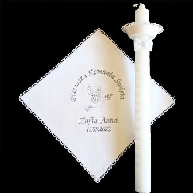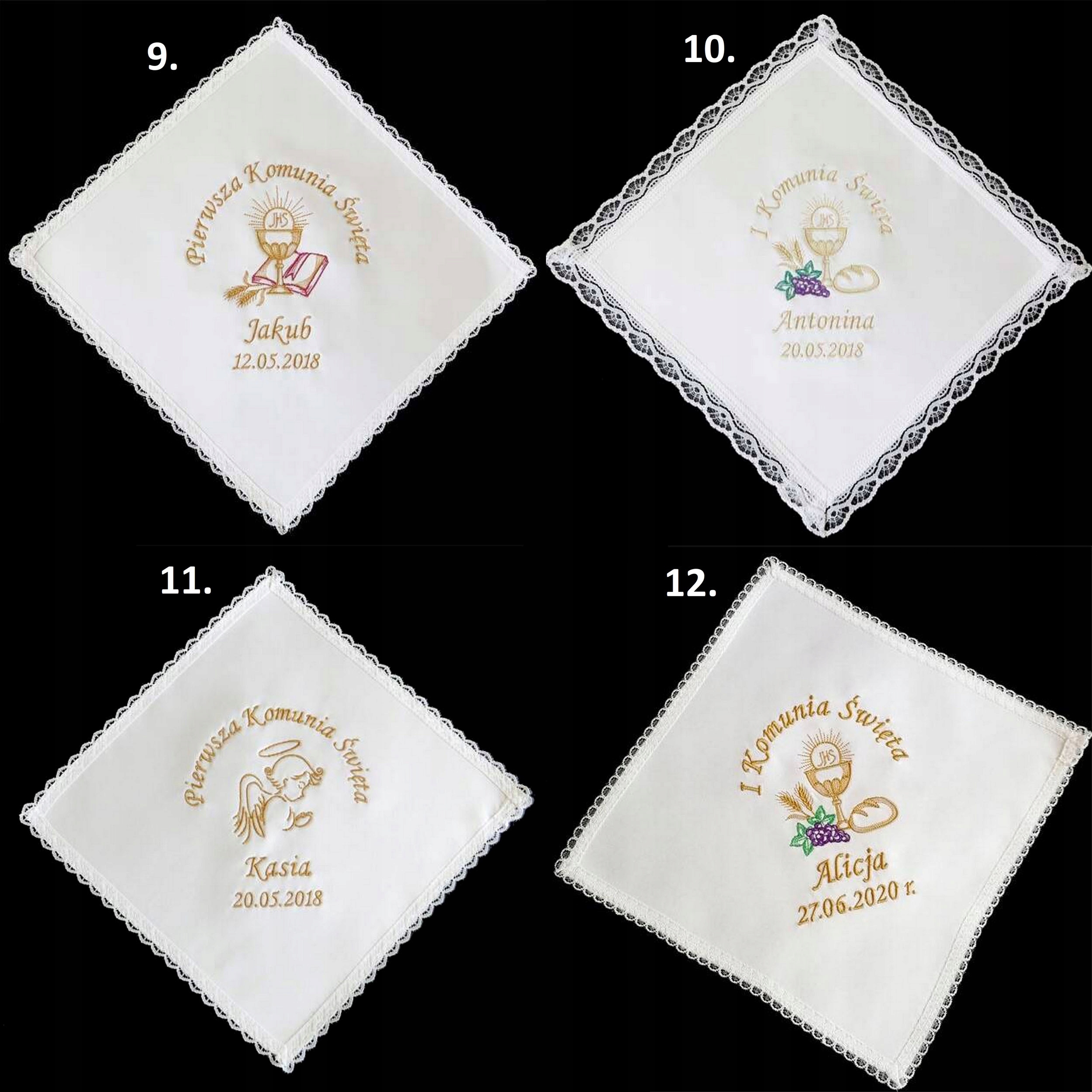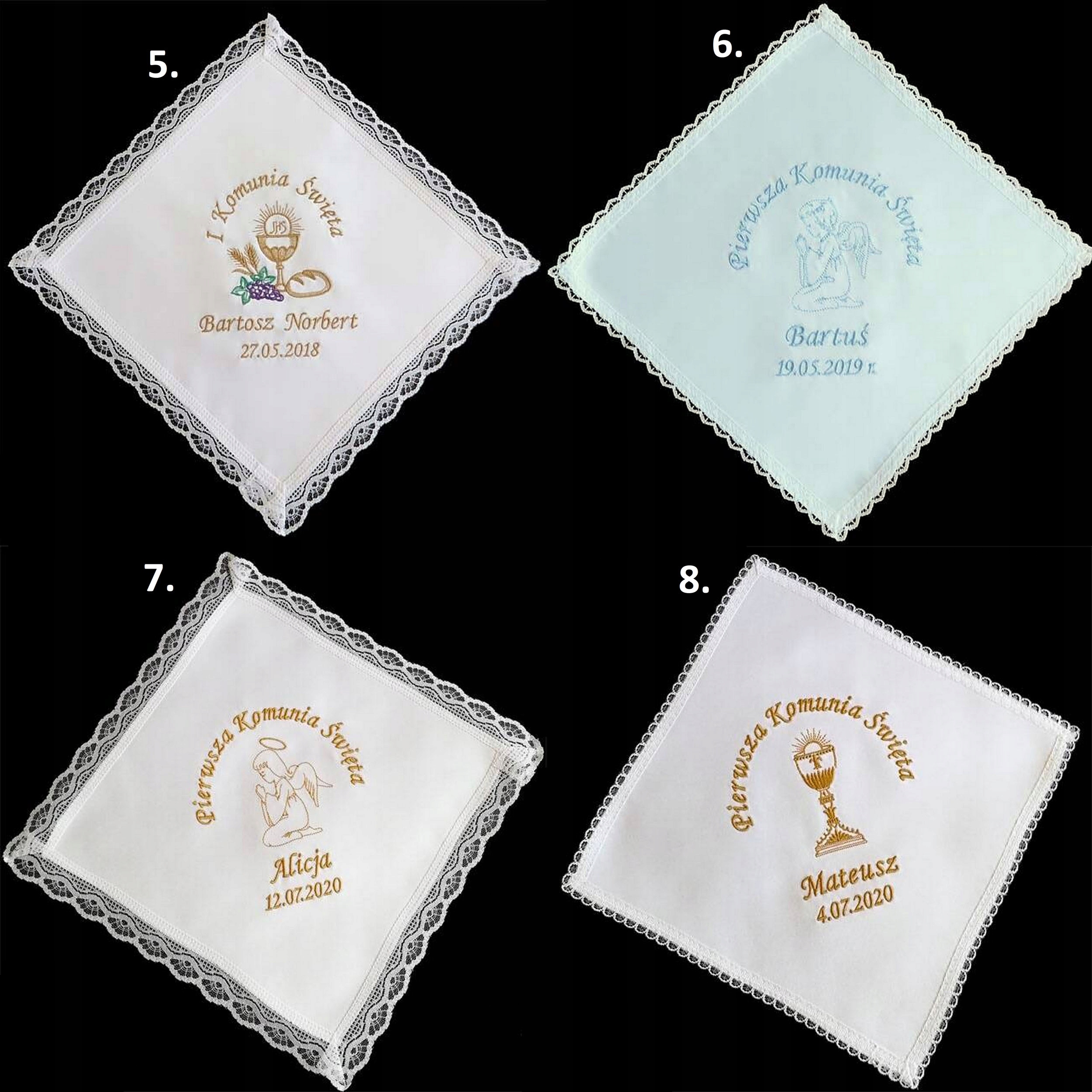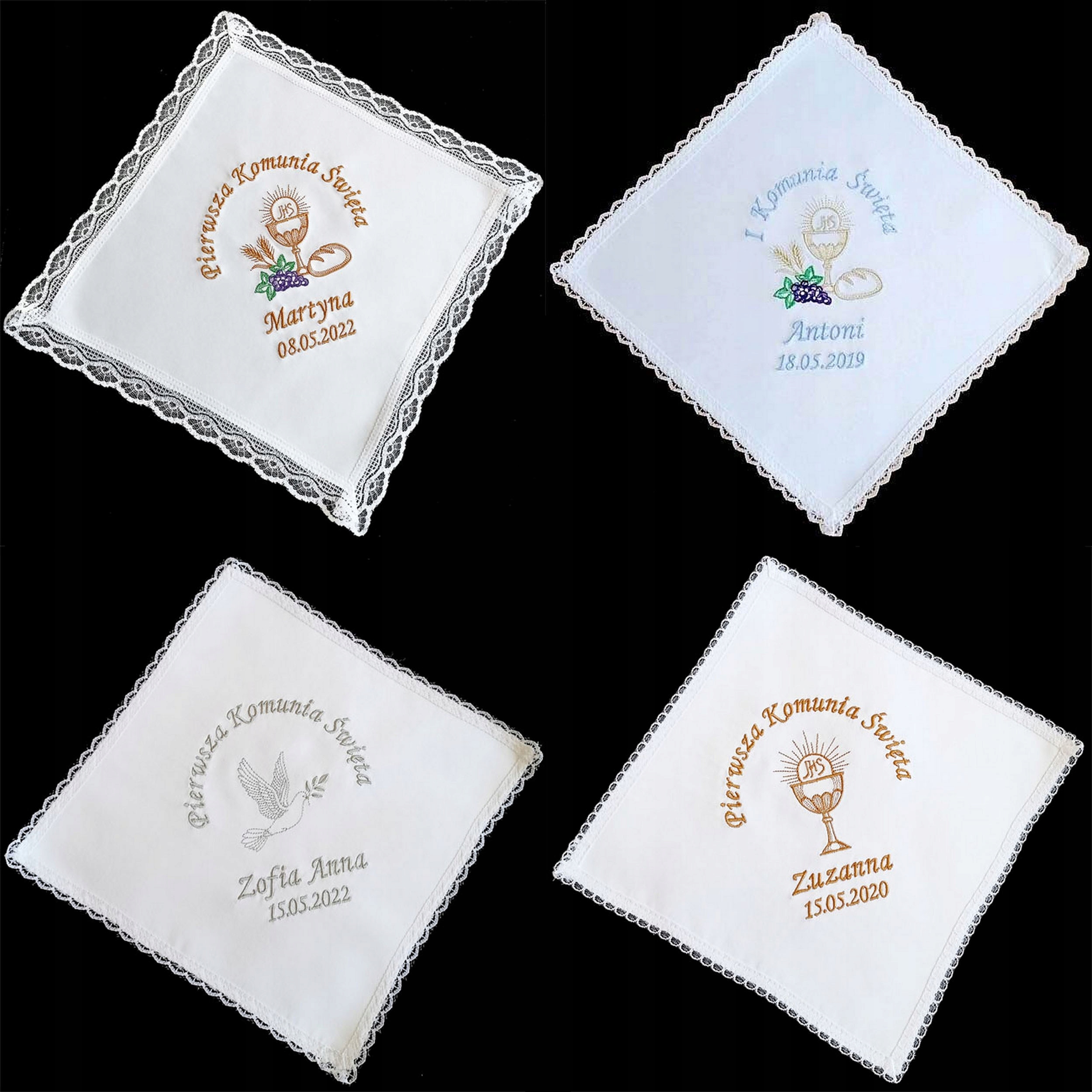 Oferujemy niepowtarzalną chusteczkę z Twoim z indywidualnym haftem, która będzie cudowną Pamiątką I Komunii Świętej i sprawi,