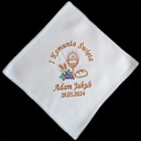 (Domyślny format daty, który haftujemy na chusteczce to „24.05.2019”. Na życzenie możliwość zmiany formatu na inny, np. "24 maja 2019 r."– prosimy wówczas o podanie treści formatu daty oraz koniecznie o dopisek: "INNY FORMAT DATY" w wiadomości do sprzedającego)