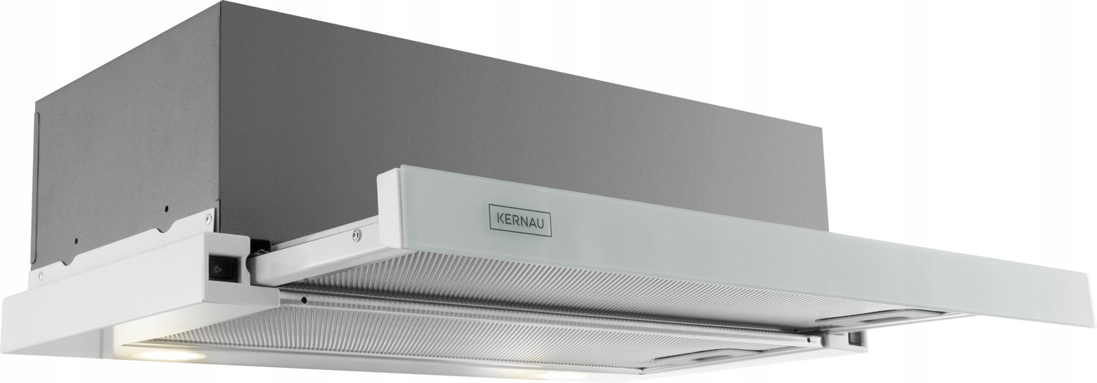 Niezwykle praktyczny okap teleskopowy KTH 10.164 W marki Kernau to urządzenie o szerokości 60 cm, którego front jest szklany, a korpus jest w kolorze białym. Posiada mechaniczne sterowanie kołyskowe, może pracować jako pochłaniacz albo jako wyciąg.